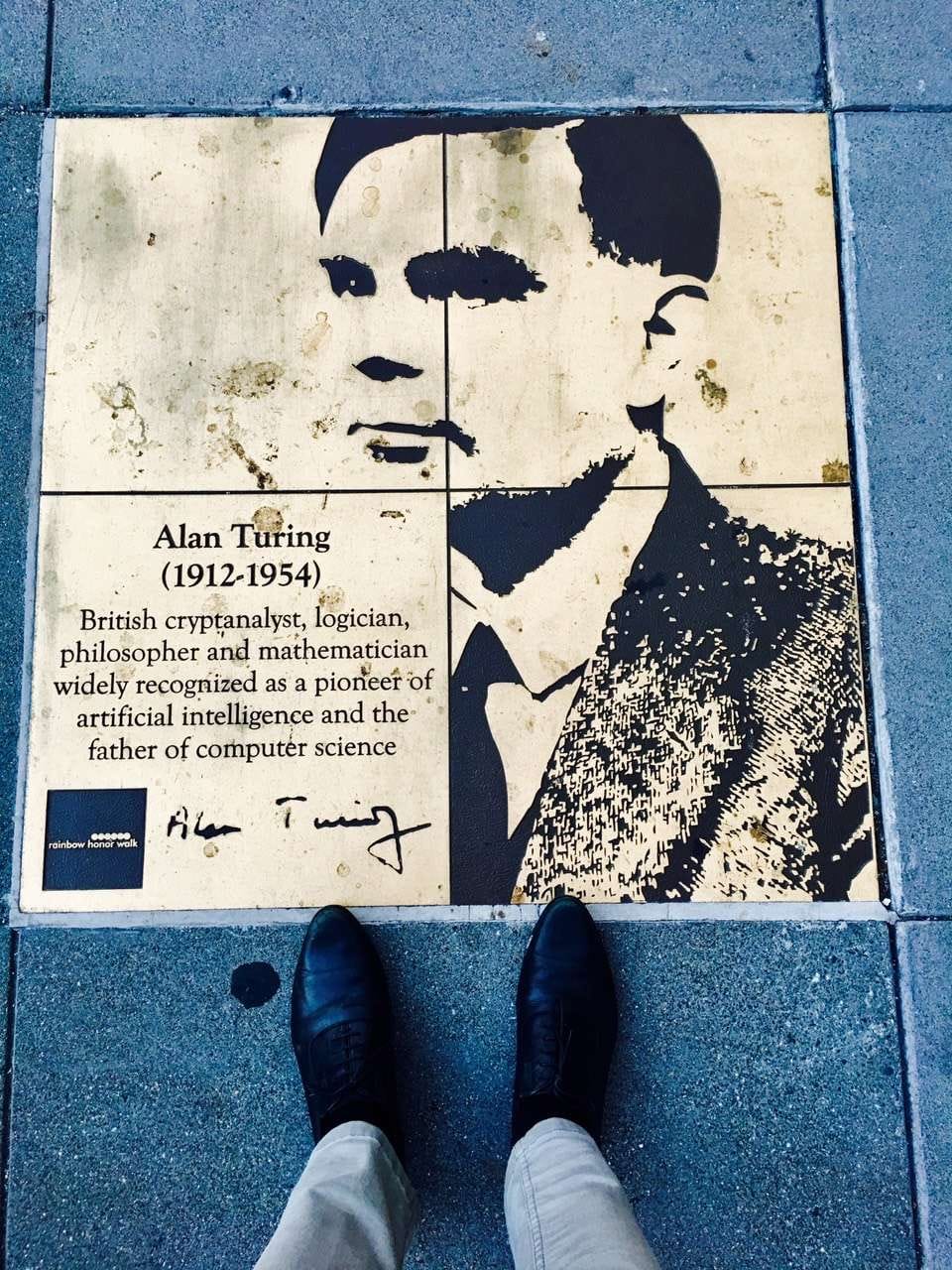 Paying respect to Alan Turing at the Rainbow Walk at Castro, SF