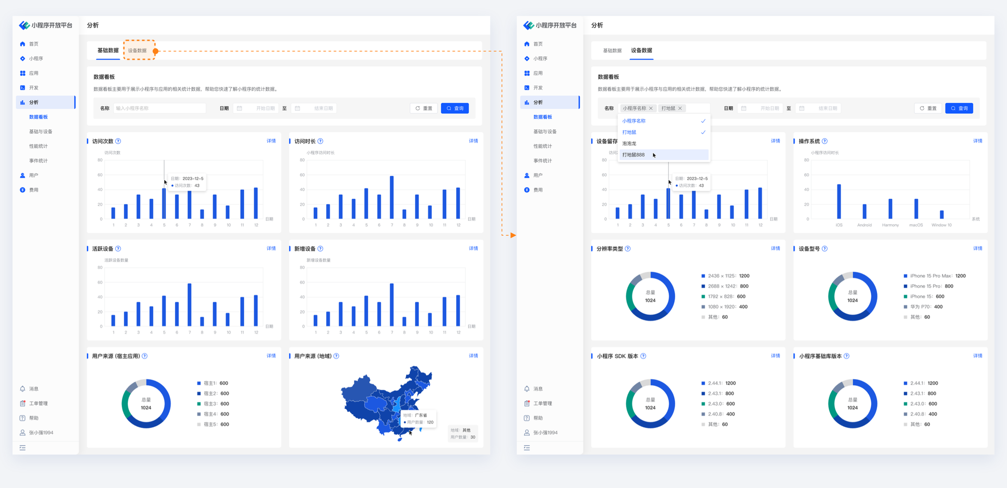 The new version's data statistics function has more comprehensive dimensions, allowing developers to cross-compare the growth and behavior trajectory behind the numbers through different dimensions of mini-programs and applications.