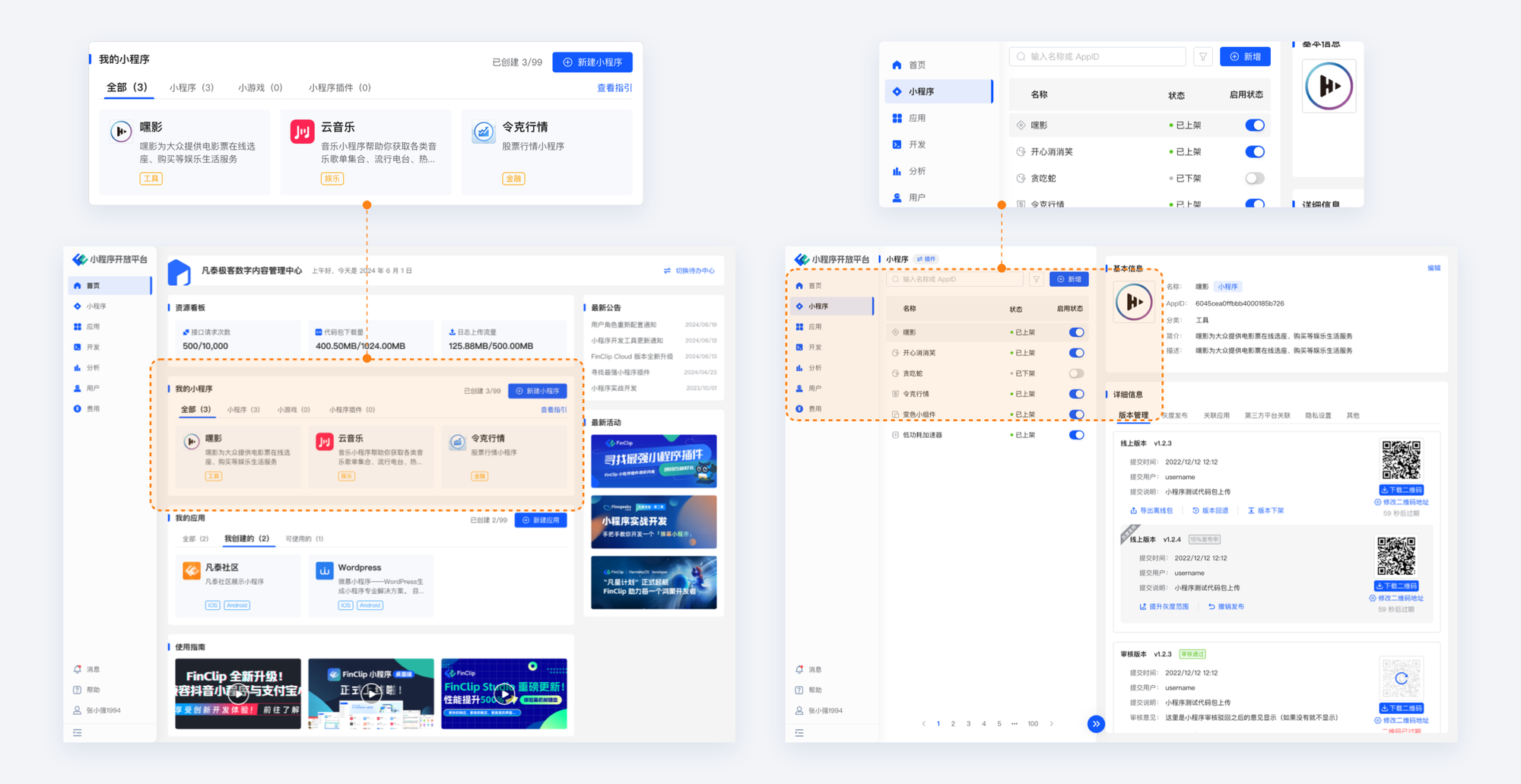The new version of FinClip Cloud was officially launched in June 2024, which mainly improves the user experience and core product features, and can significantly enhance the product user experience. Come and give it a try!