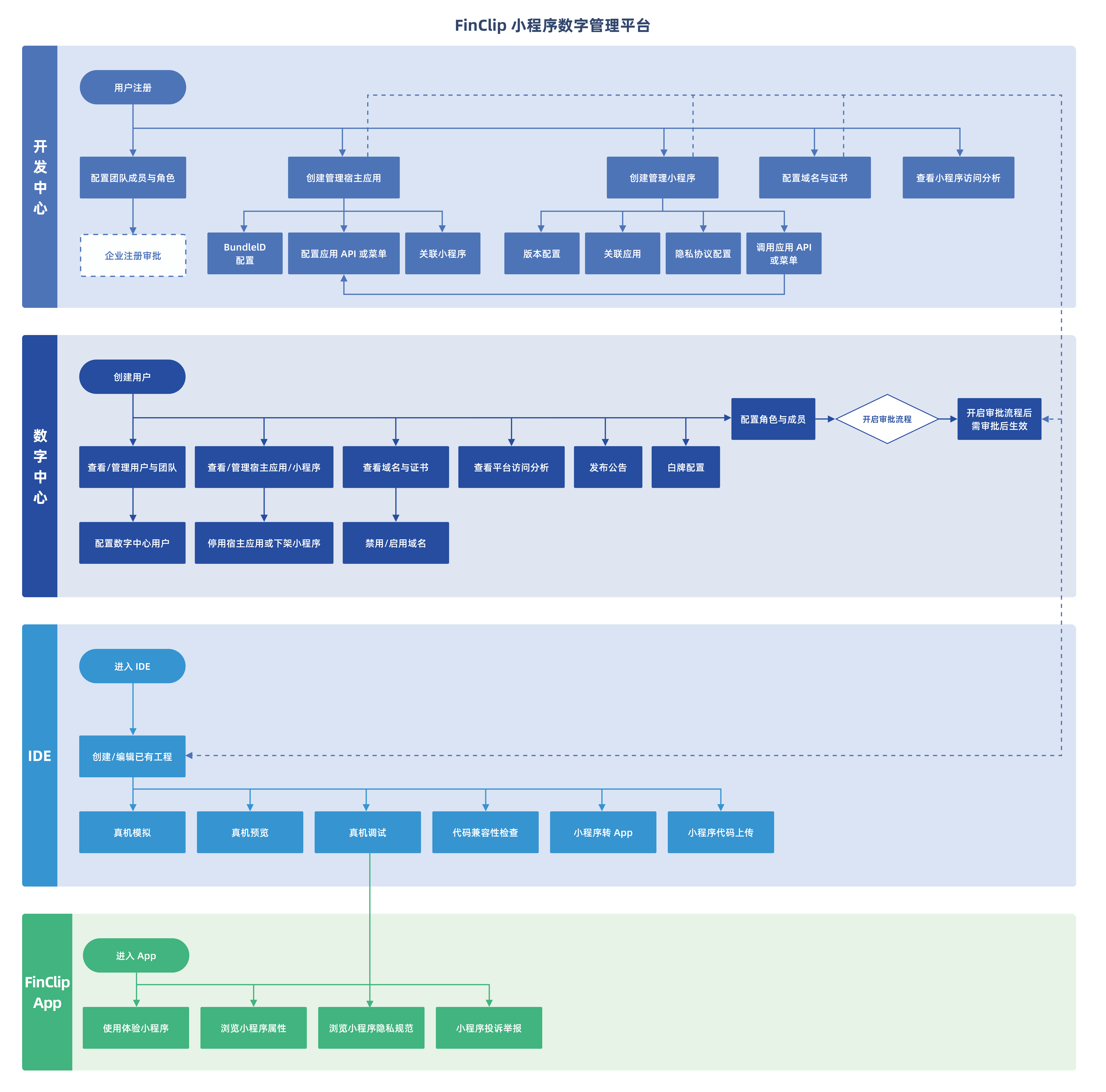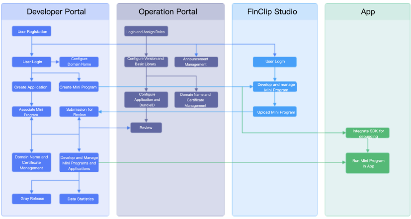 If you are using the FinClip Cloud version, the usage flow is as shown below: