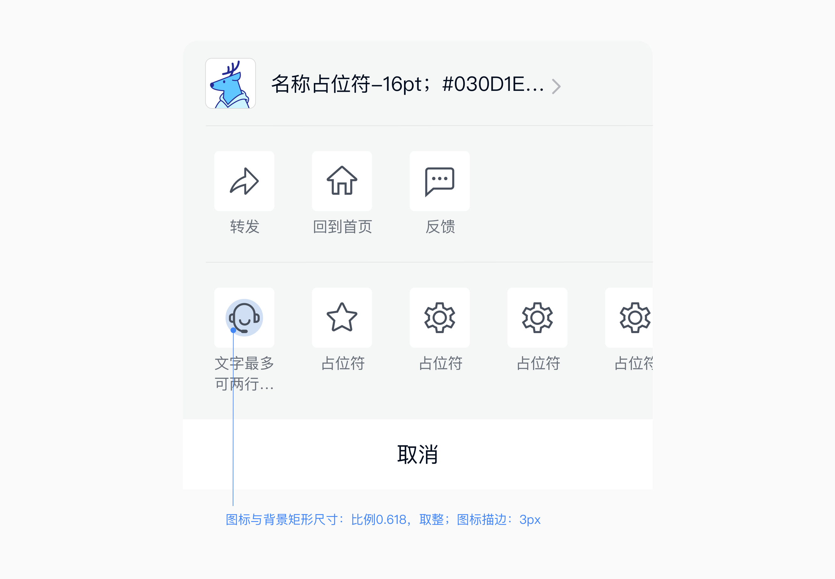 除这三个基础按钮功能外,开发者还可以自行注入其他功能,对于自行注入的功能,请按照下方所示进行图标设计。