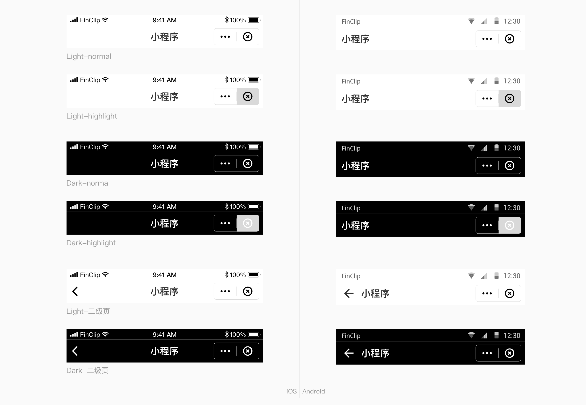 FinClip小程序支持多种灵活的自定义方式,为使小程序整体视觉统一,做如下约定,开发者可根据本约定进行UI设计。