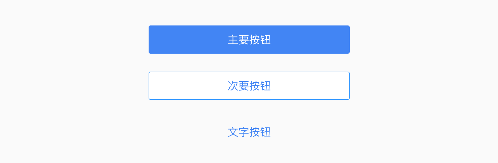 使用的按钮主要分为主要按钮、次要按钮、文字按钮,其中: