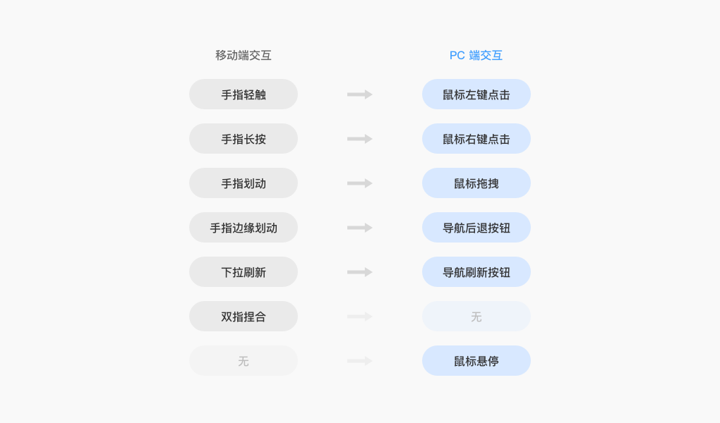 PC 端依赖鼠标和键盘操作,需要将移动端手势转译为鼠标操作