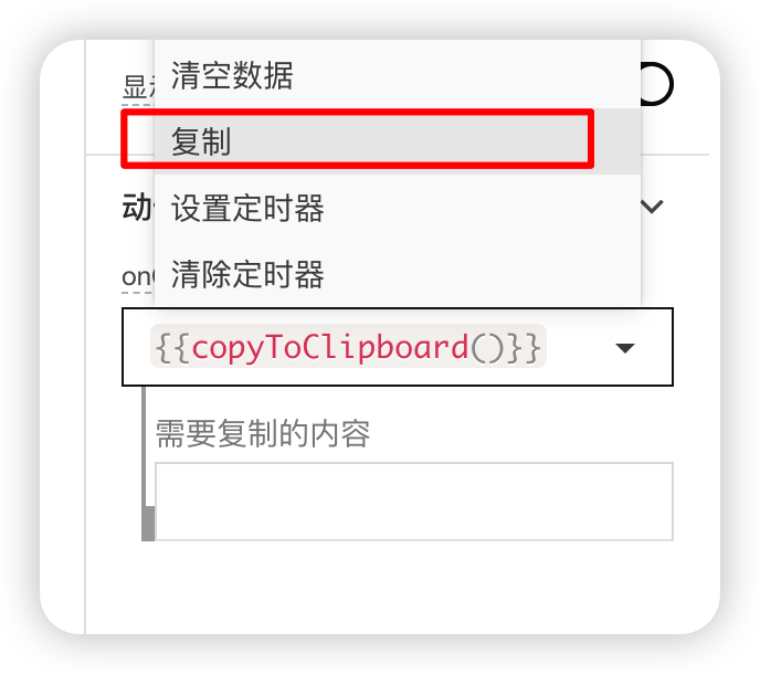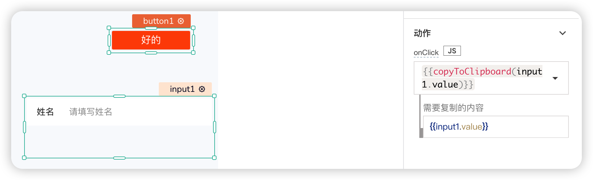 例如:在按钮组件中选择复制输入框(input)组件的内容