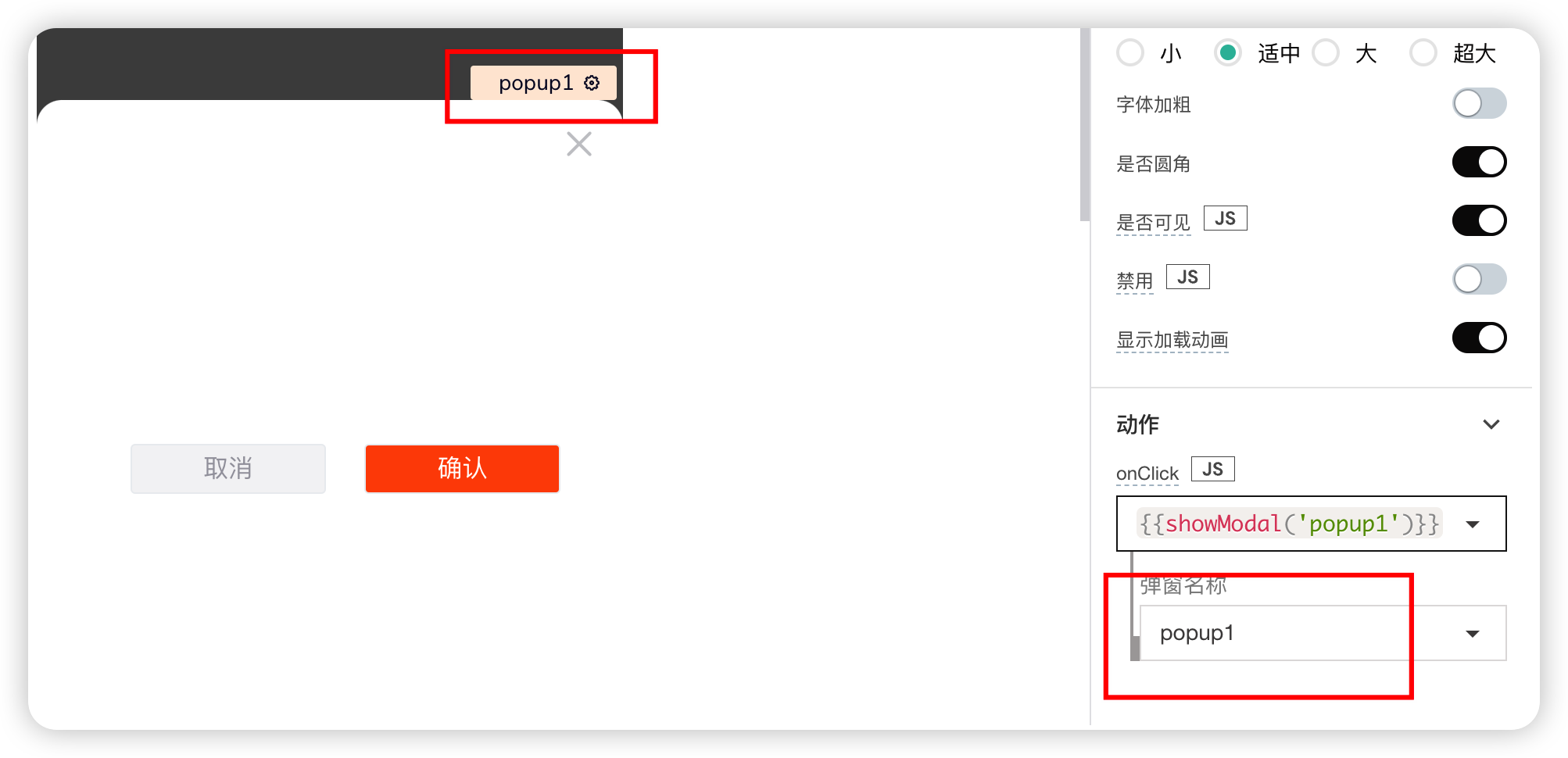 | Modal Name | 要显示的弹窗名称 |