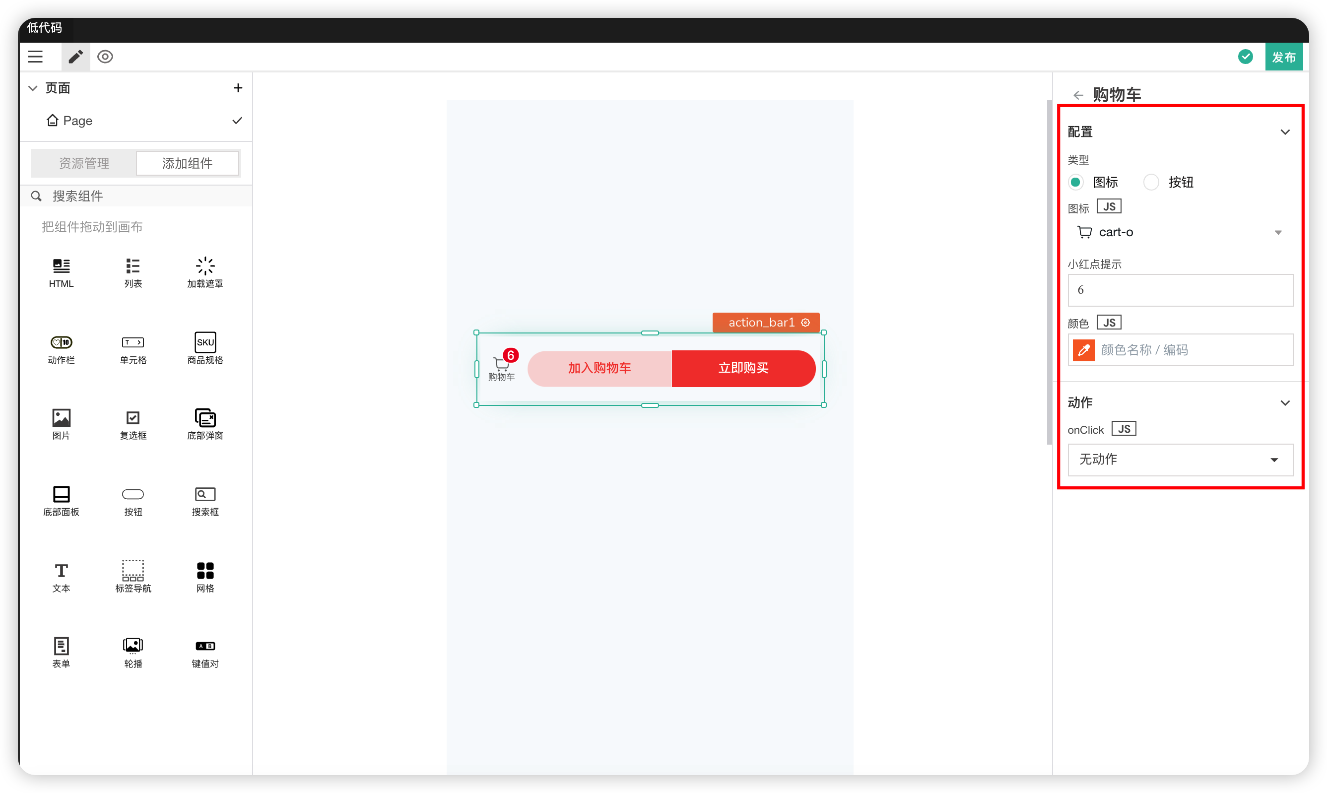 | 图标 | 如果动作单元为图标,则展示为该图标,用于修改图标 |