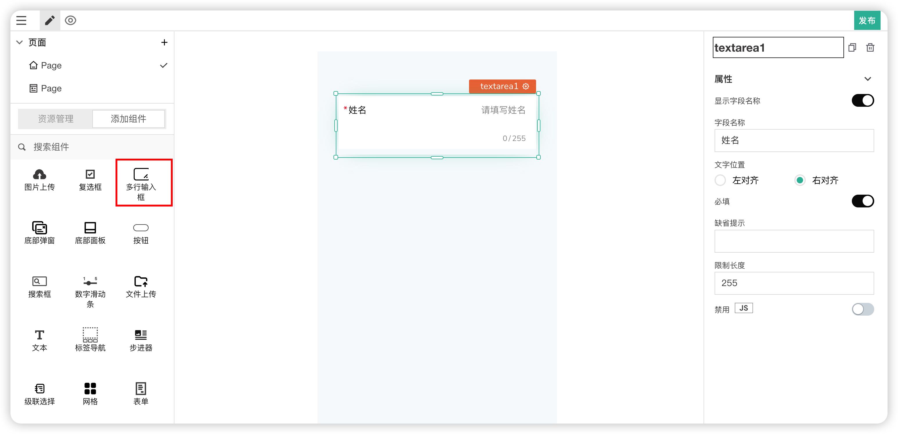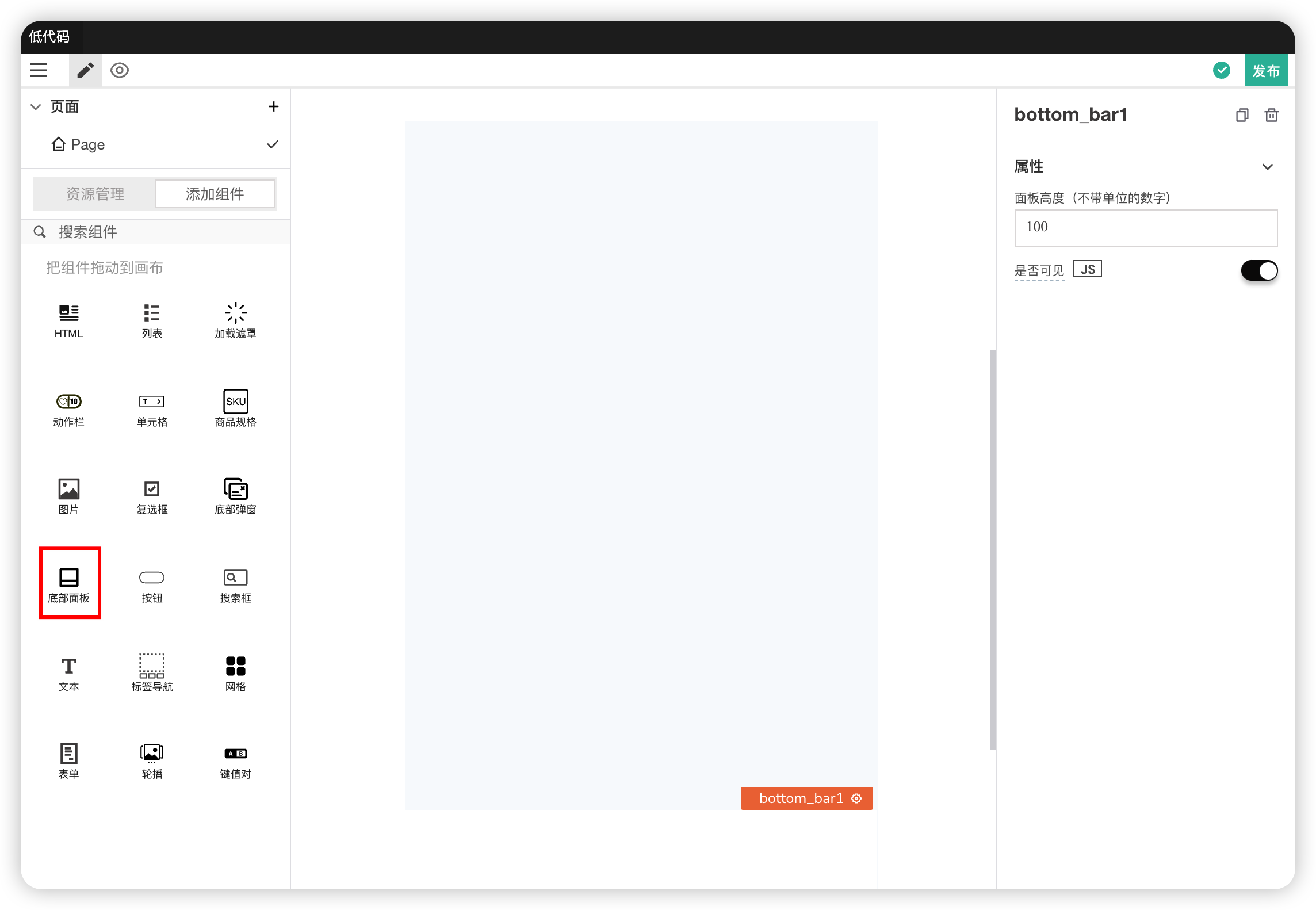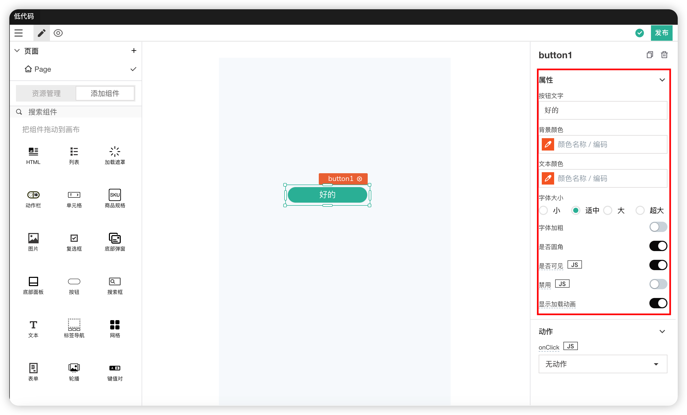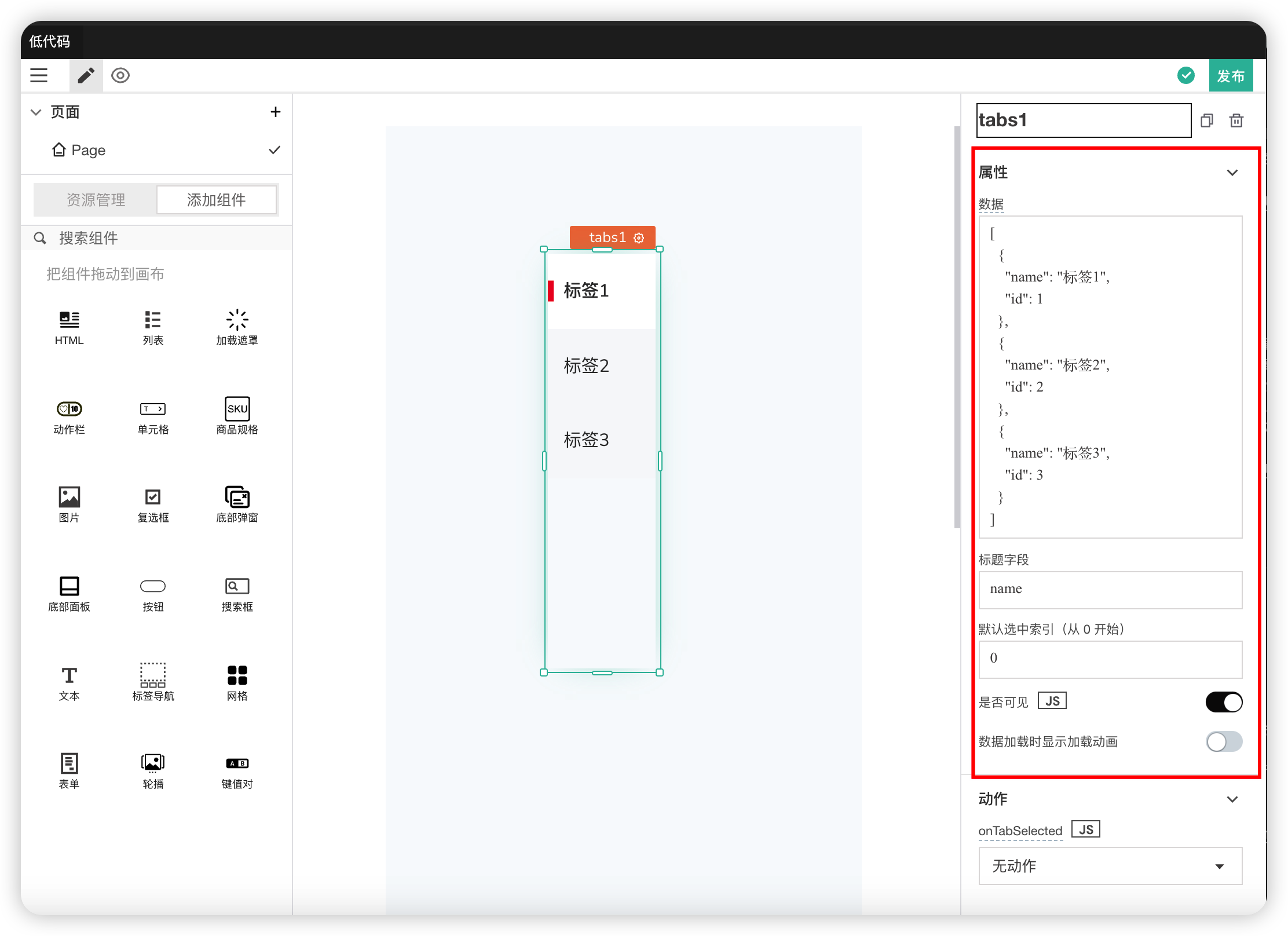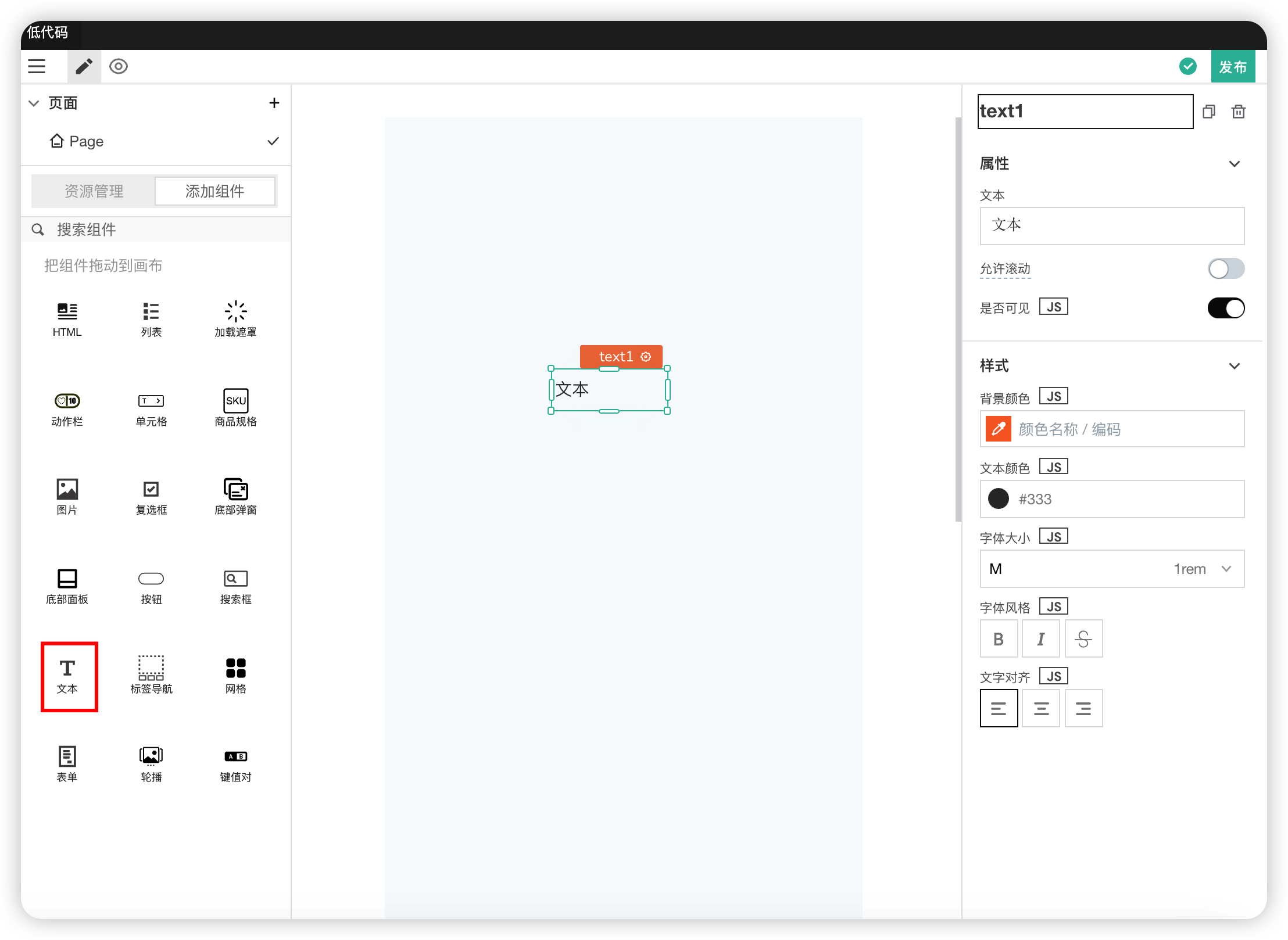 | 是否可见 | 控制组件在页面上的可见性。关闭时:当应用程序发布时,组件将不可见。在编辑模式下它看起来是半透明的 |