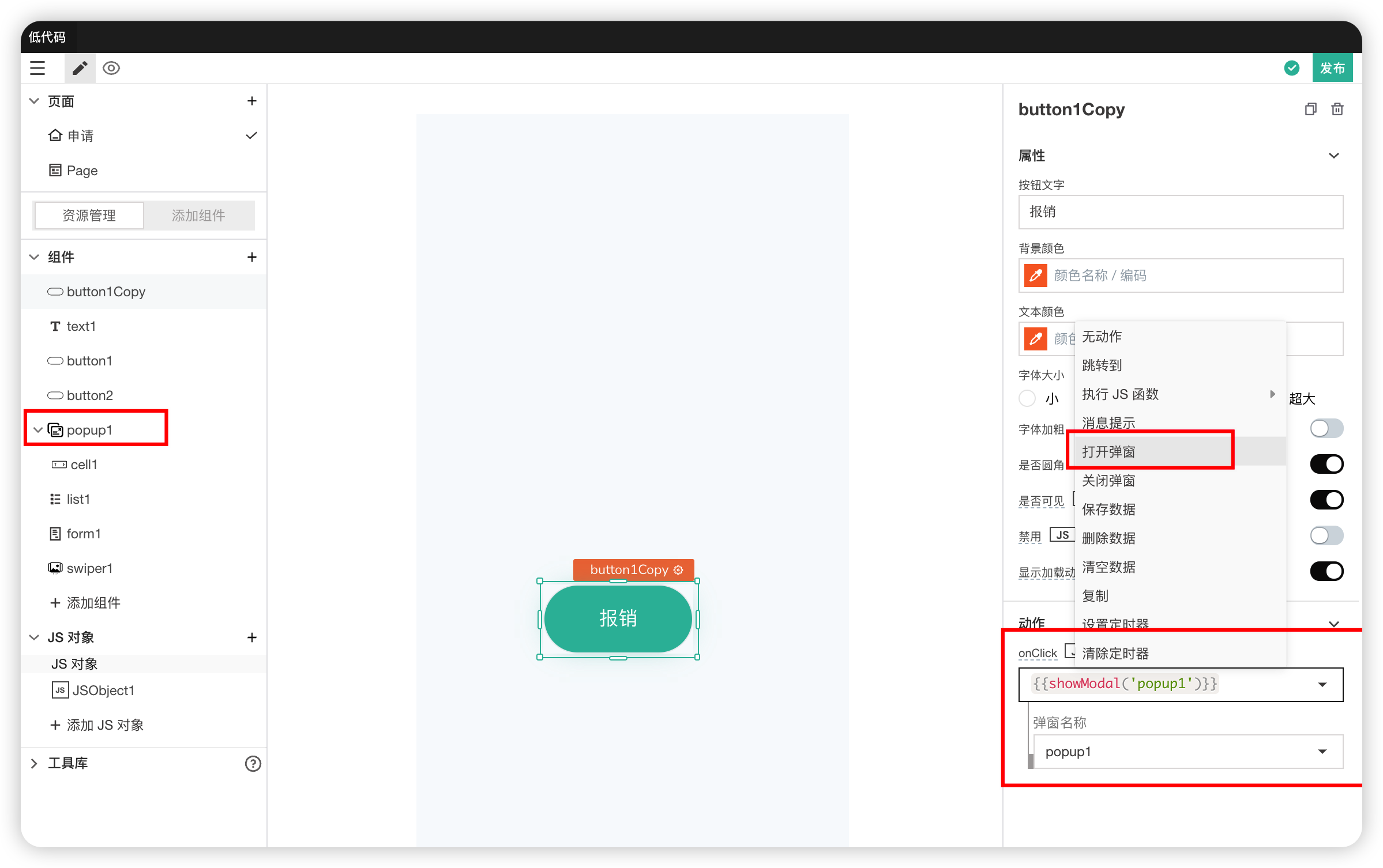 | 类型 | 修改动作单元的展示类型,可为按钮和图标 |