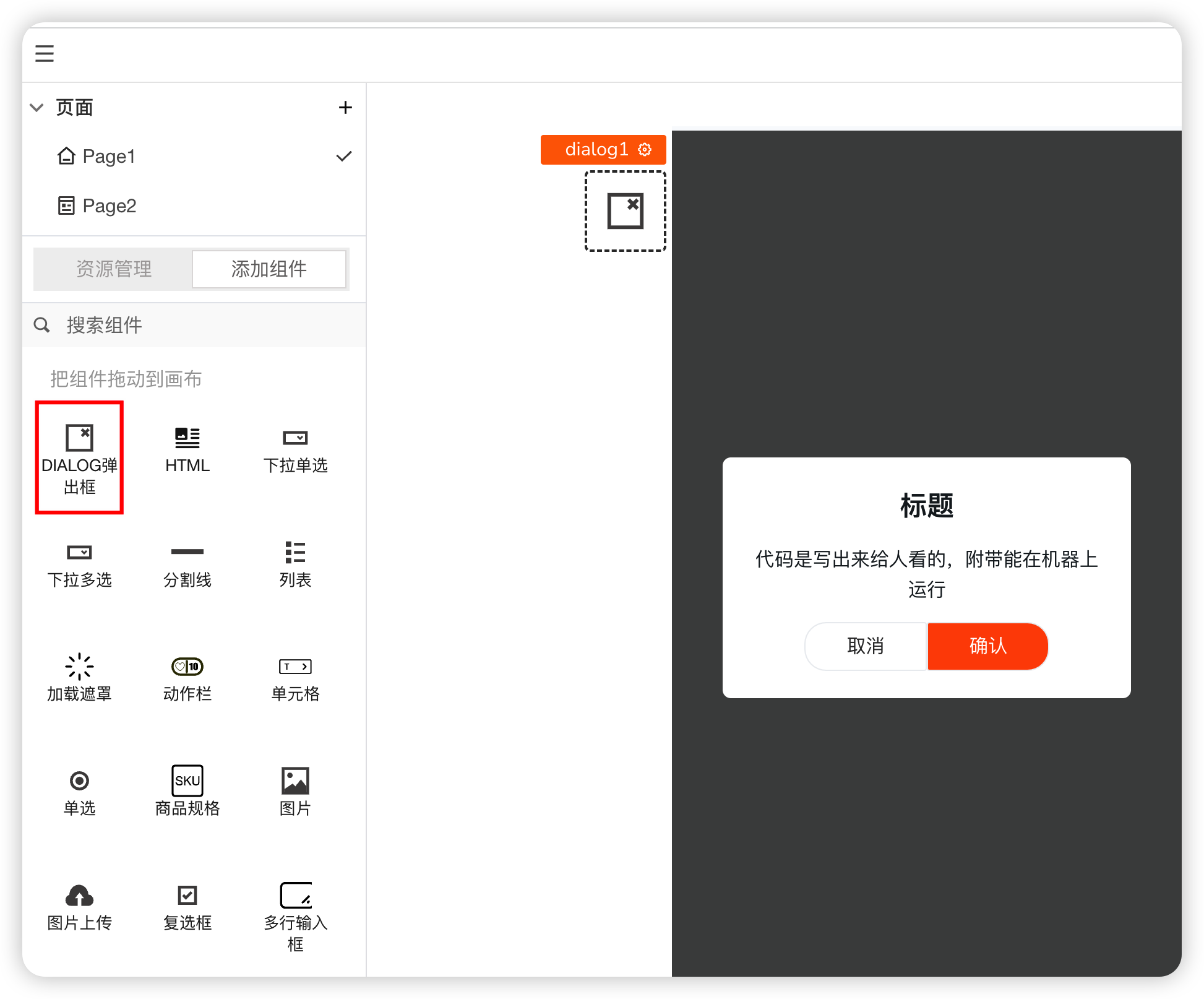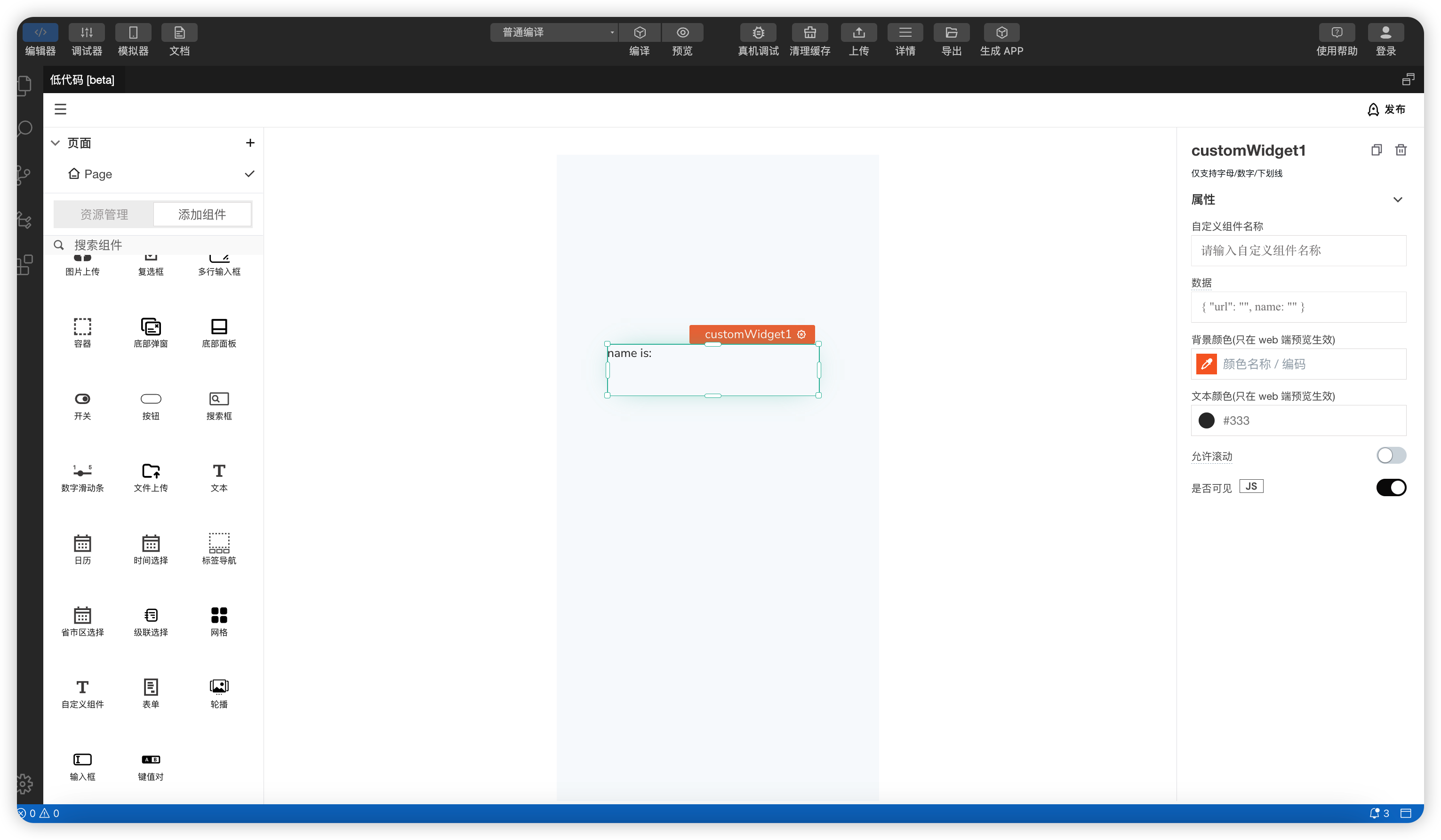 自定义组件,如目前组件不满足需求,用户可自定义组件,实现需求
