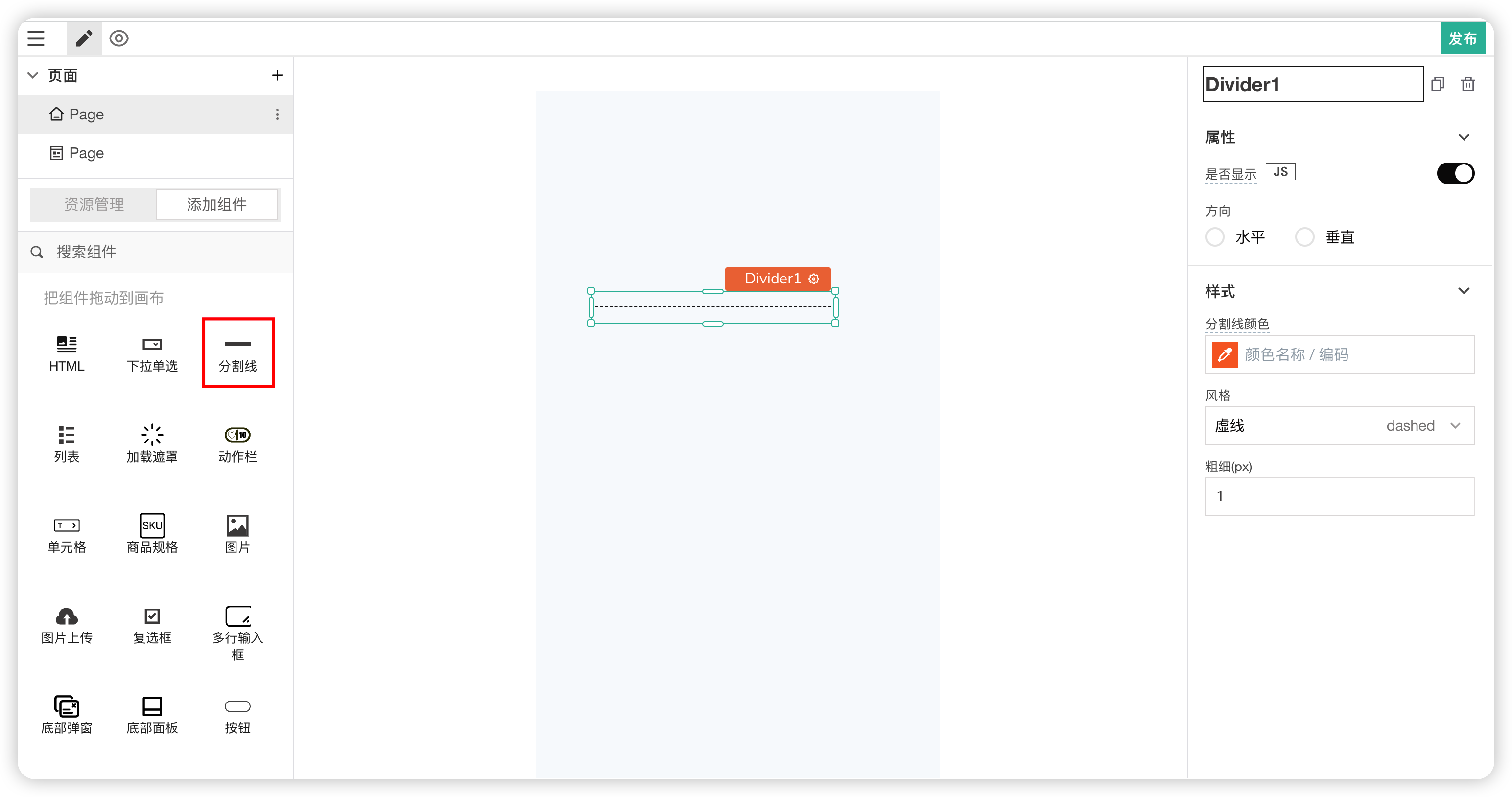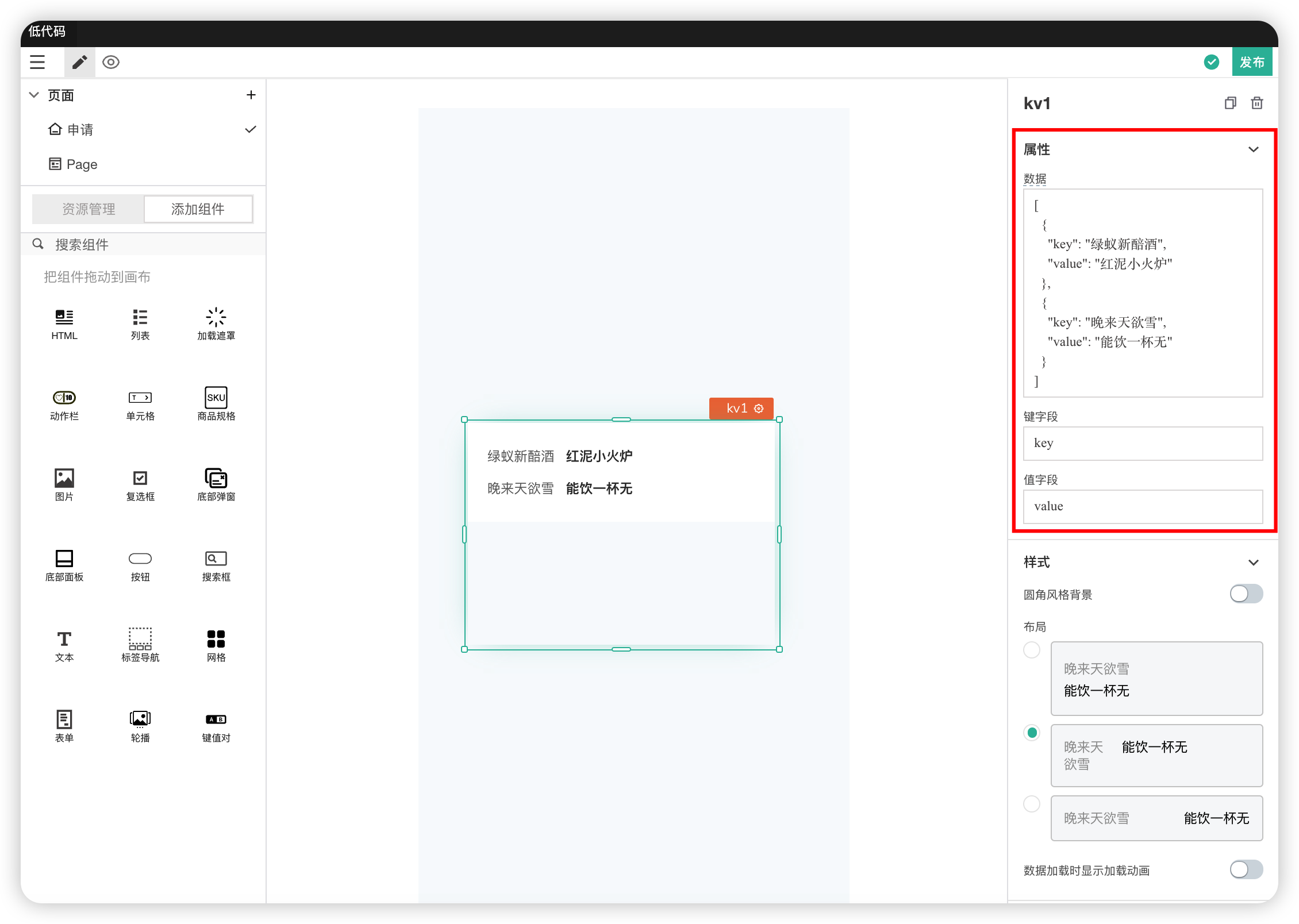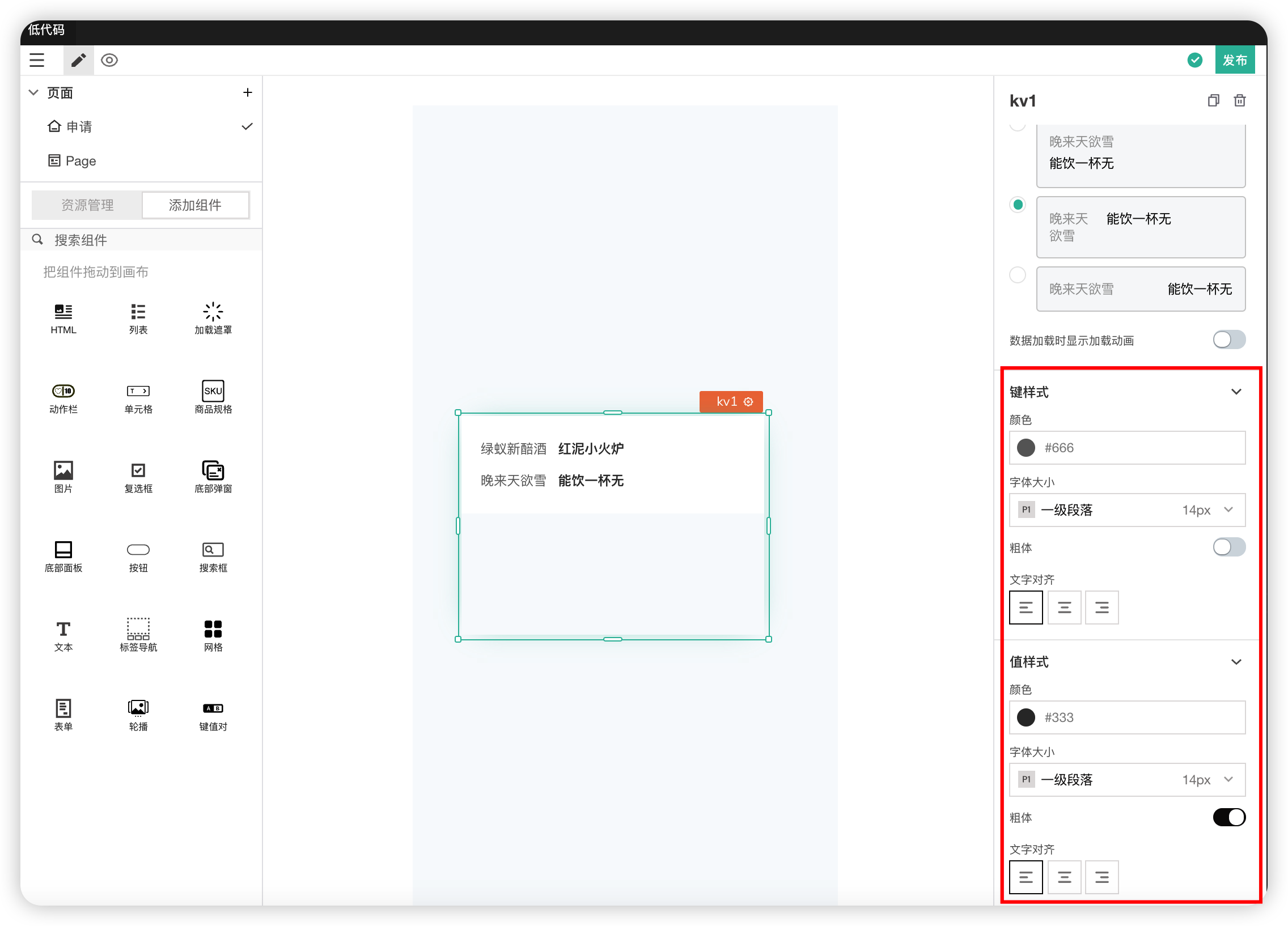 | 是否显示 | 控制组件在页面上的可见性。关闭时:当应用程序发布时,组件将不可见。在编辑模式下它看起来是半透明的 |