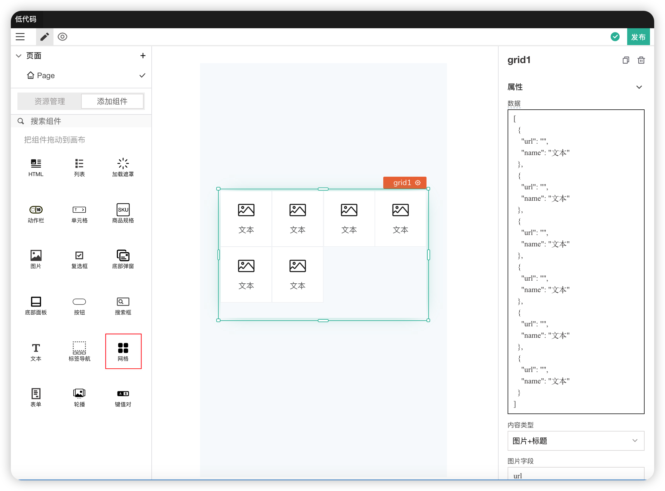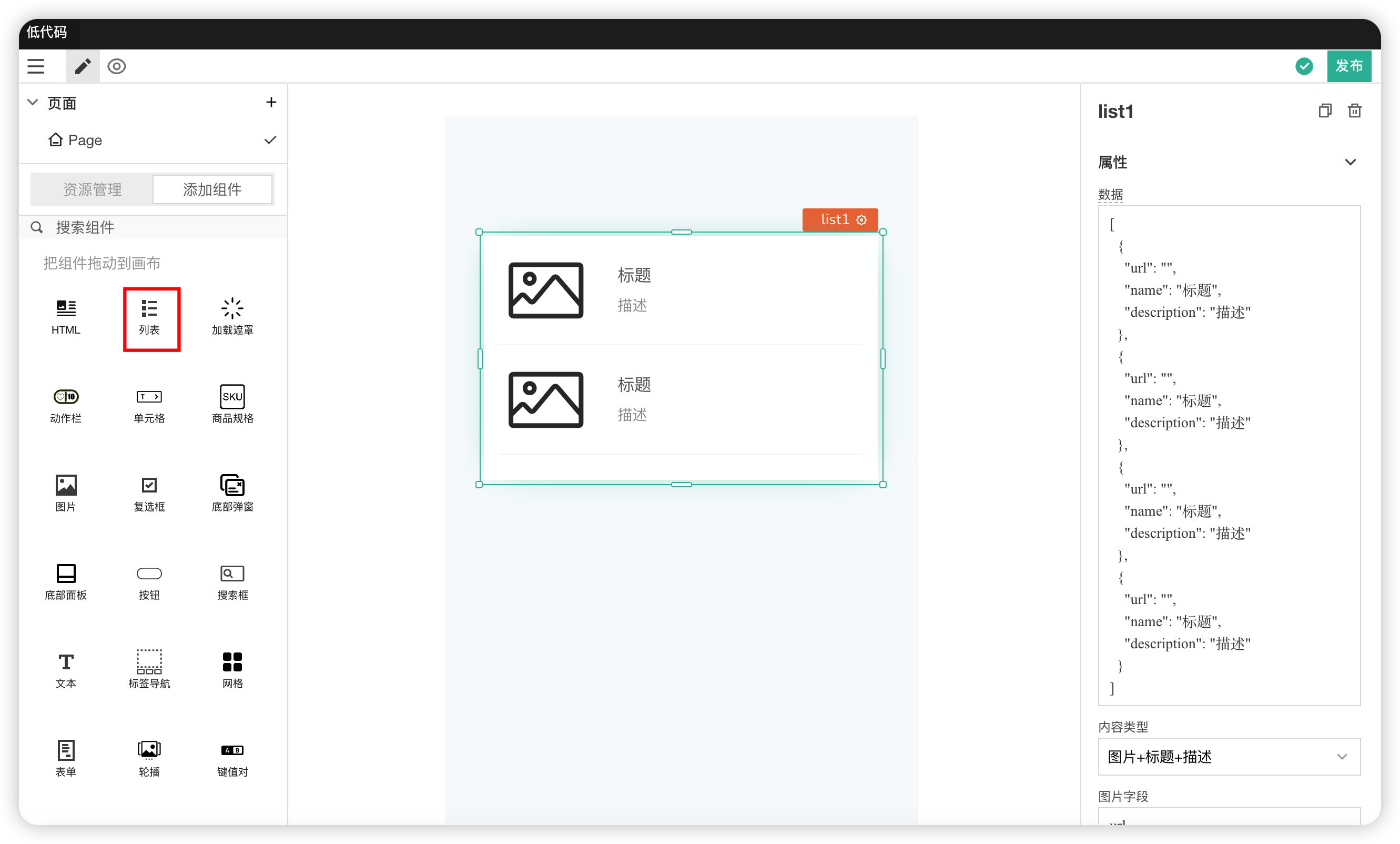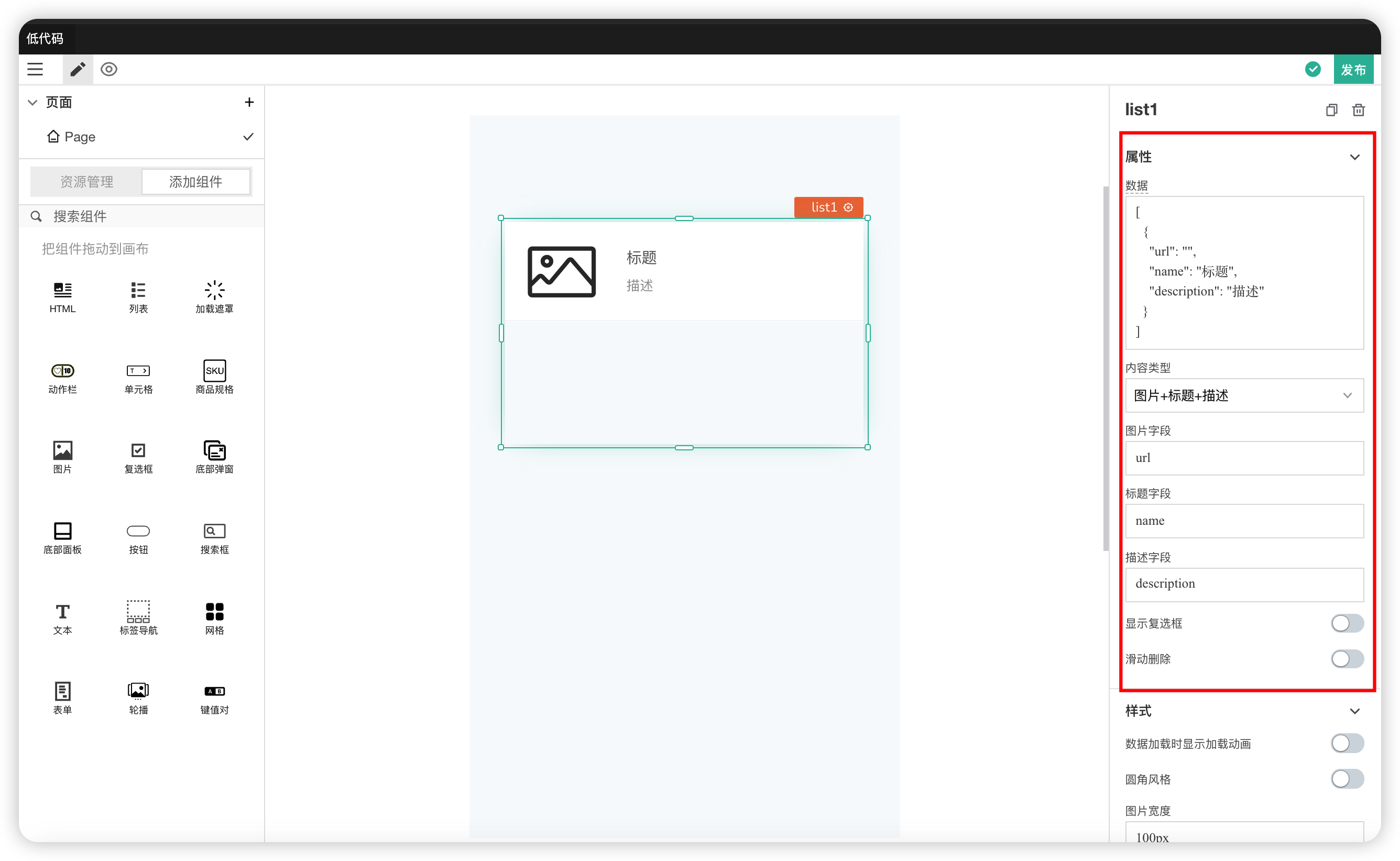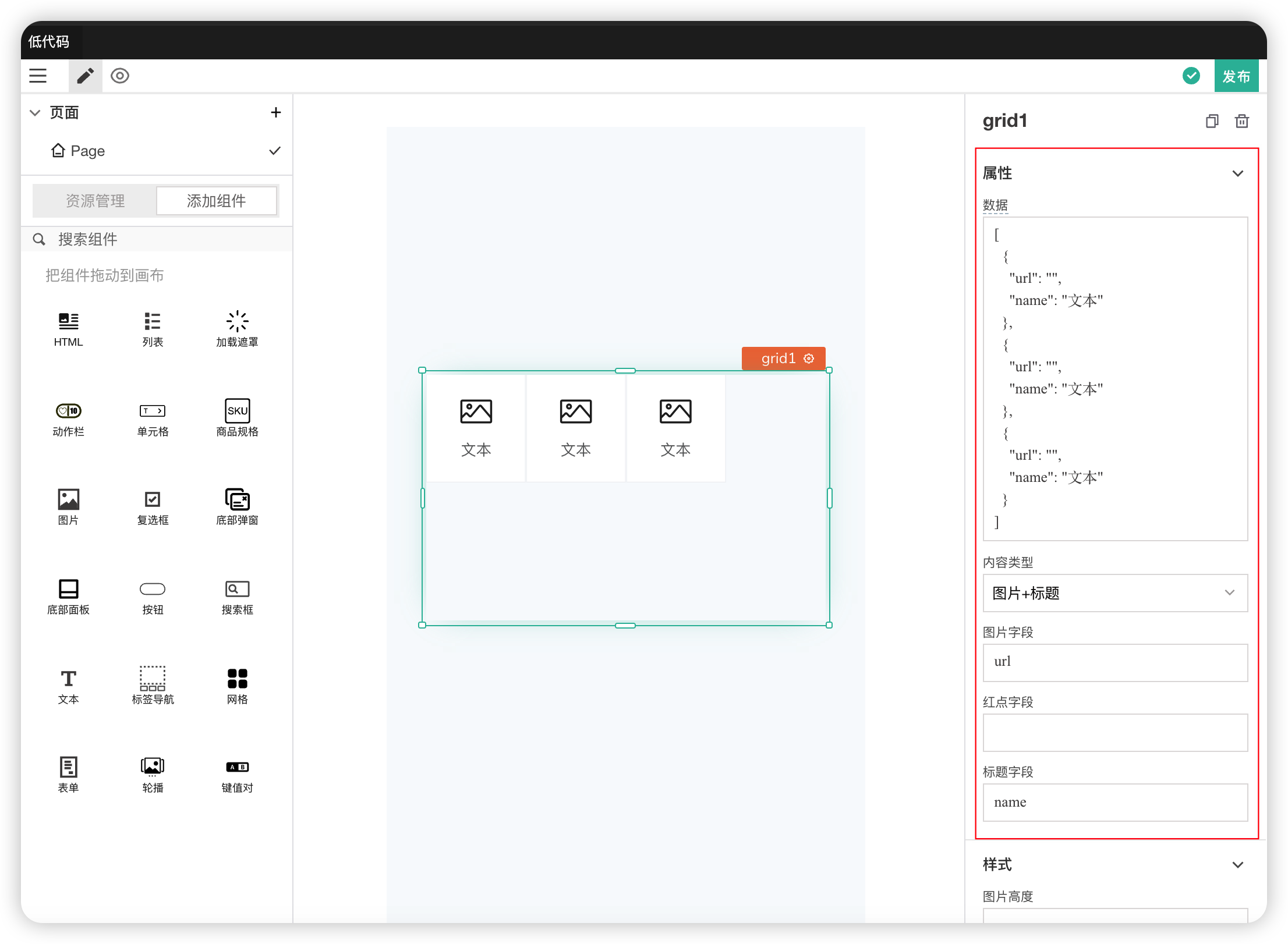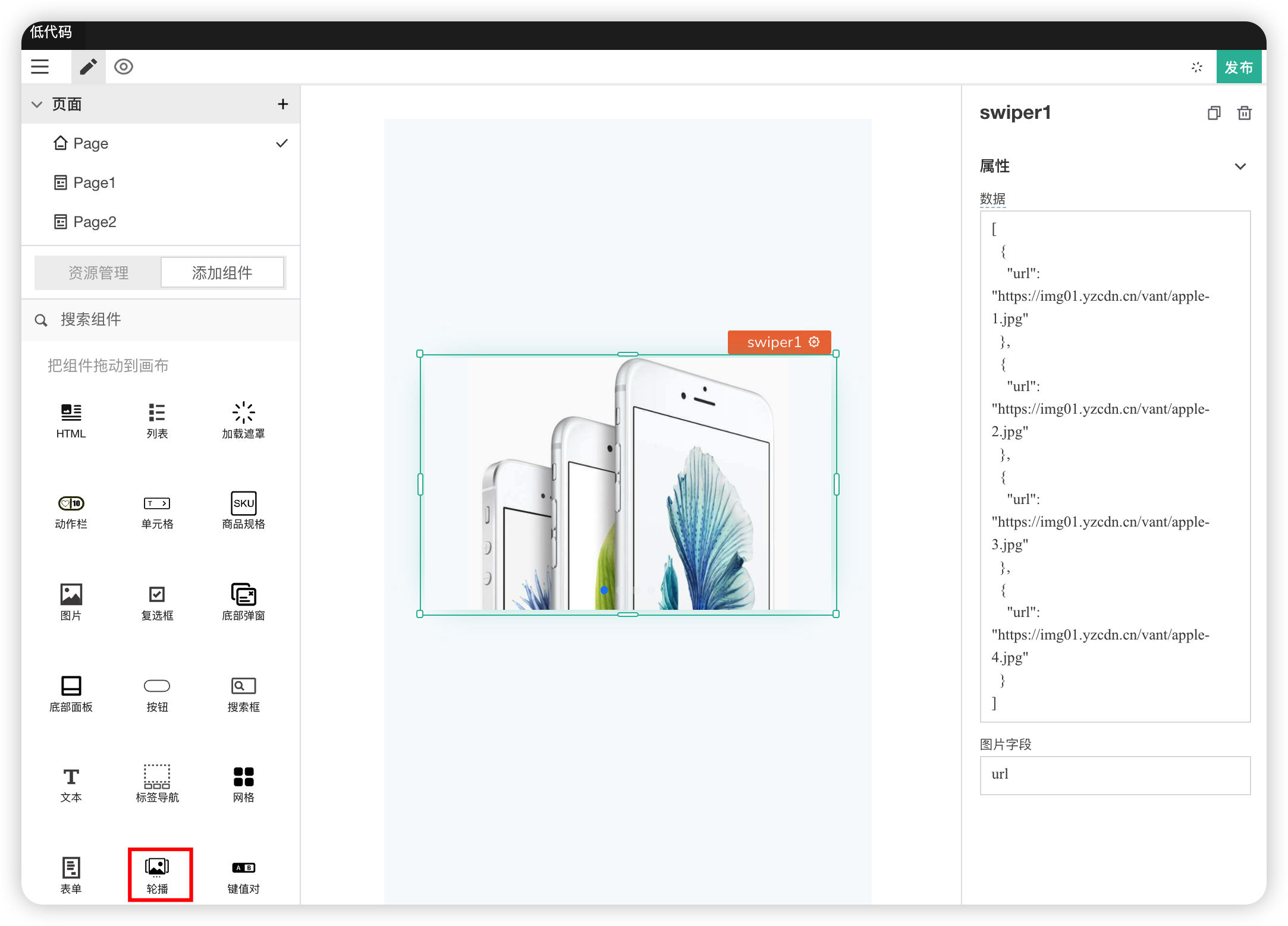 | 图片字段 | 数据对象中获取图片地址的字段名 |