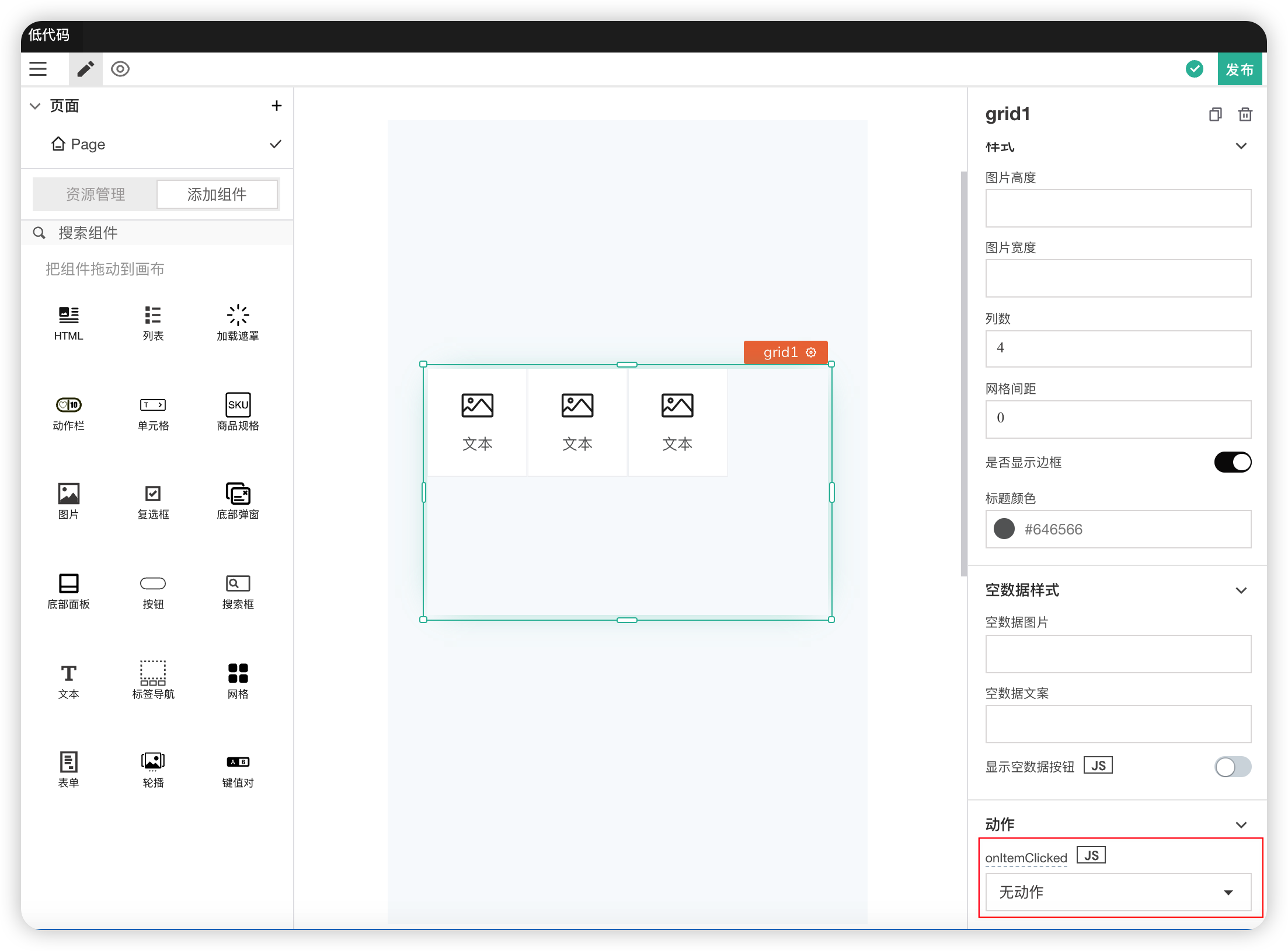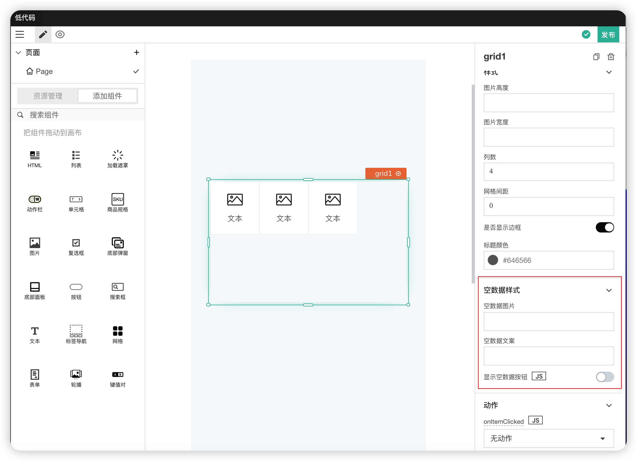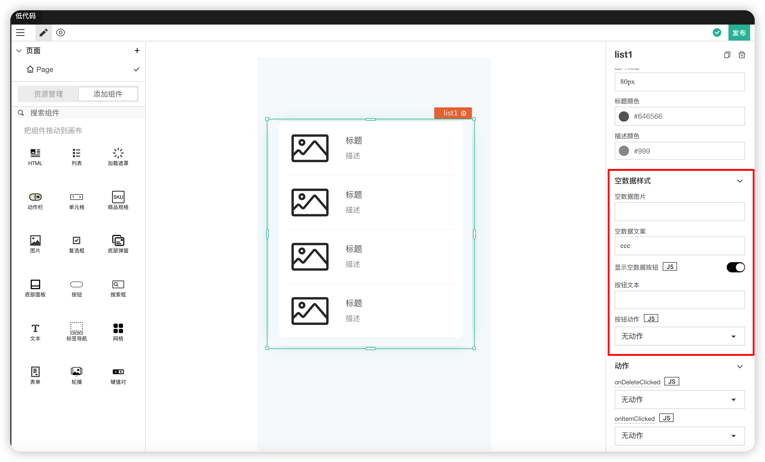 | 按钮动作 | 当数据为空时,按钮执行的动作 |