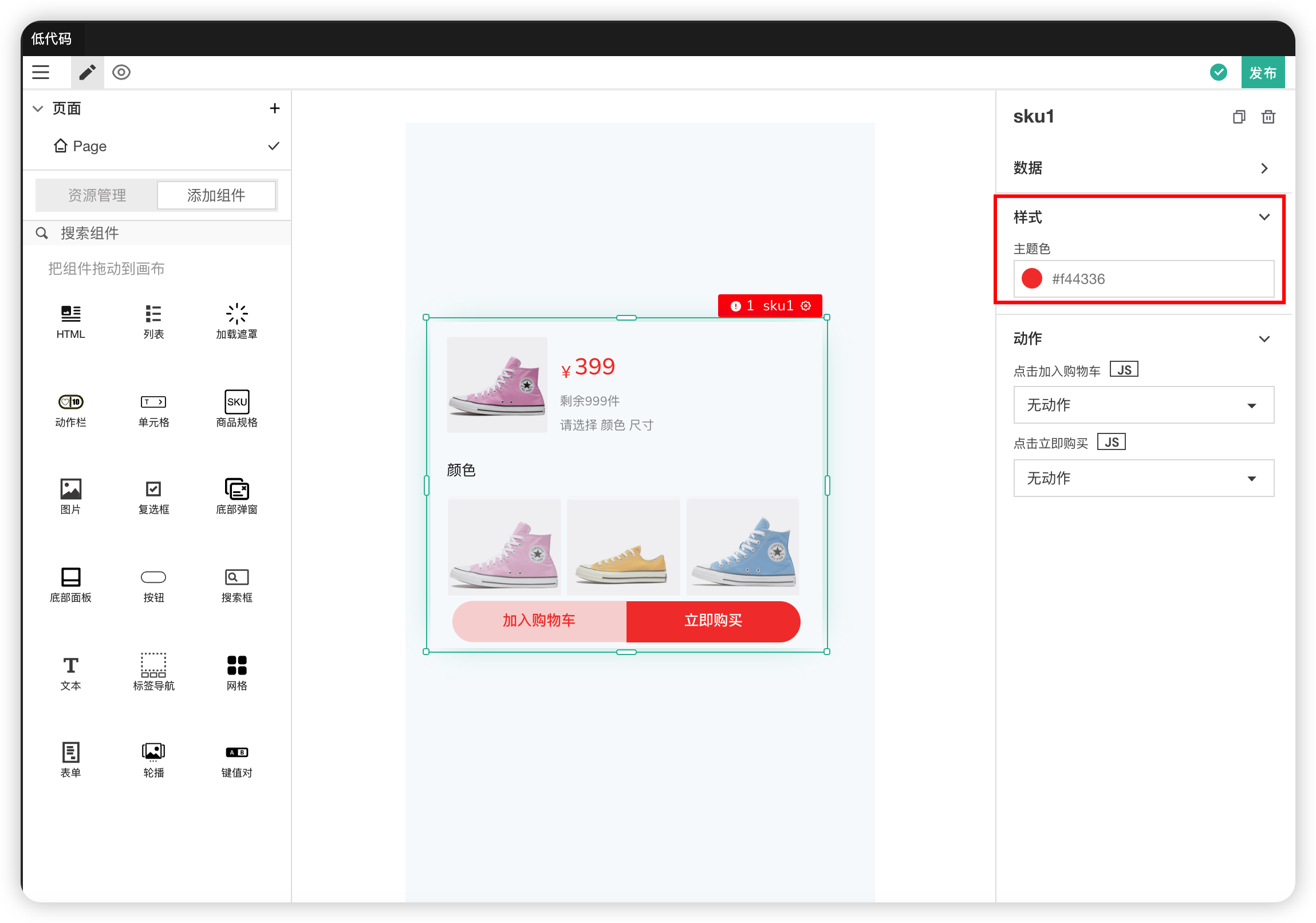 | 点击立即购买 | 点击立即购买按钮时,触发的动作 |