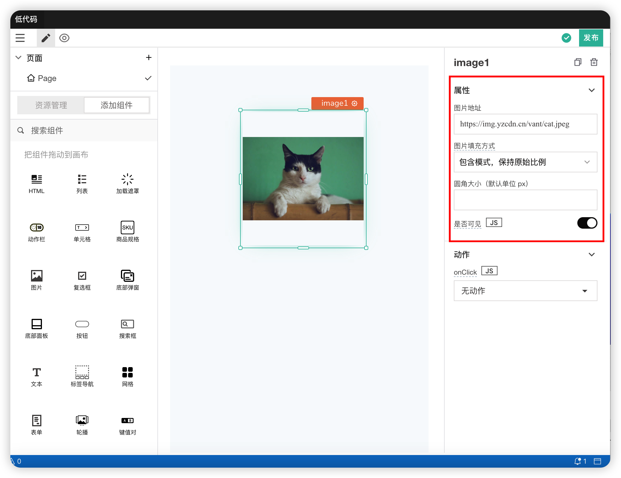 | 圆角大小 | 对图片组件的圆角边框进行修改 |
