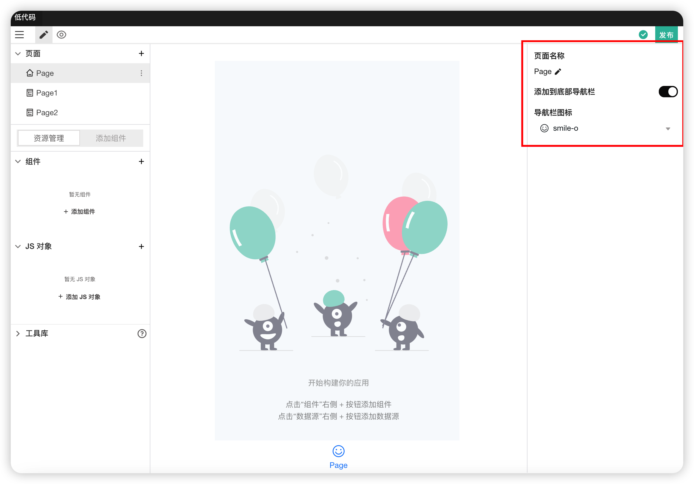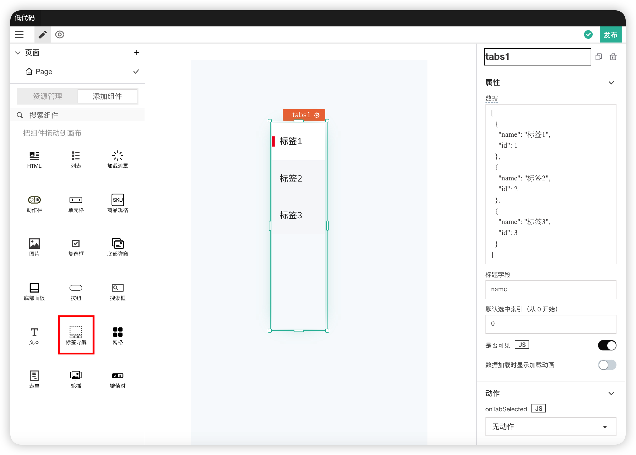 | 导航栏图标 | 用于设置底部导航栏对应的图标,只在添加到底部导航栏选中状态下有效 |