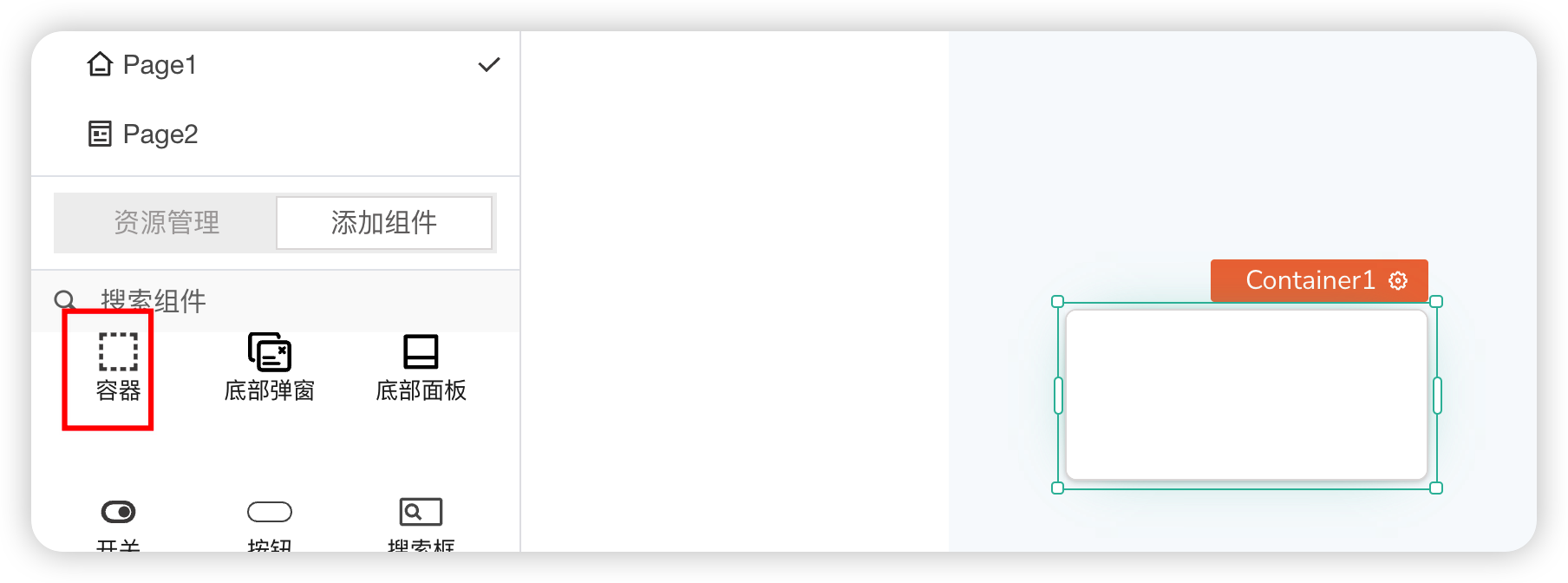 | 高度 | 当容器内组建大于容器尺寸时,设置是否允许在容器组件内滚动 |
