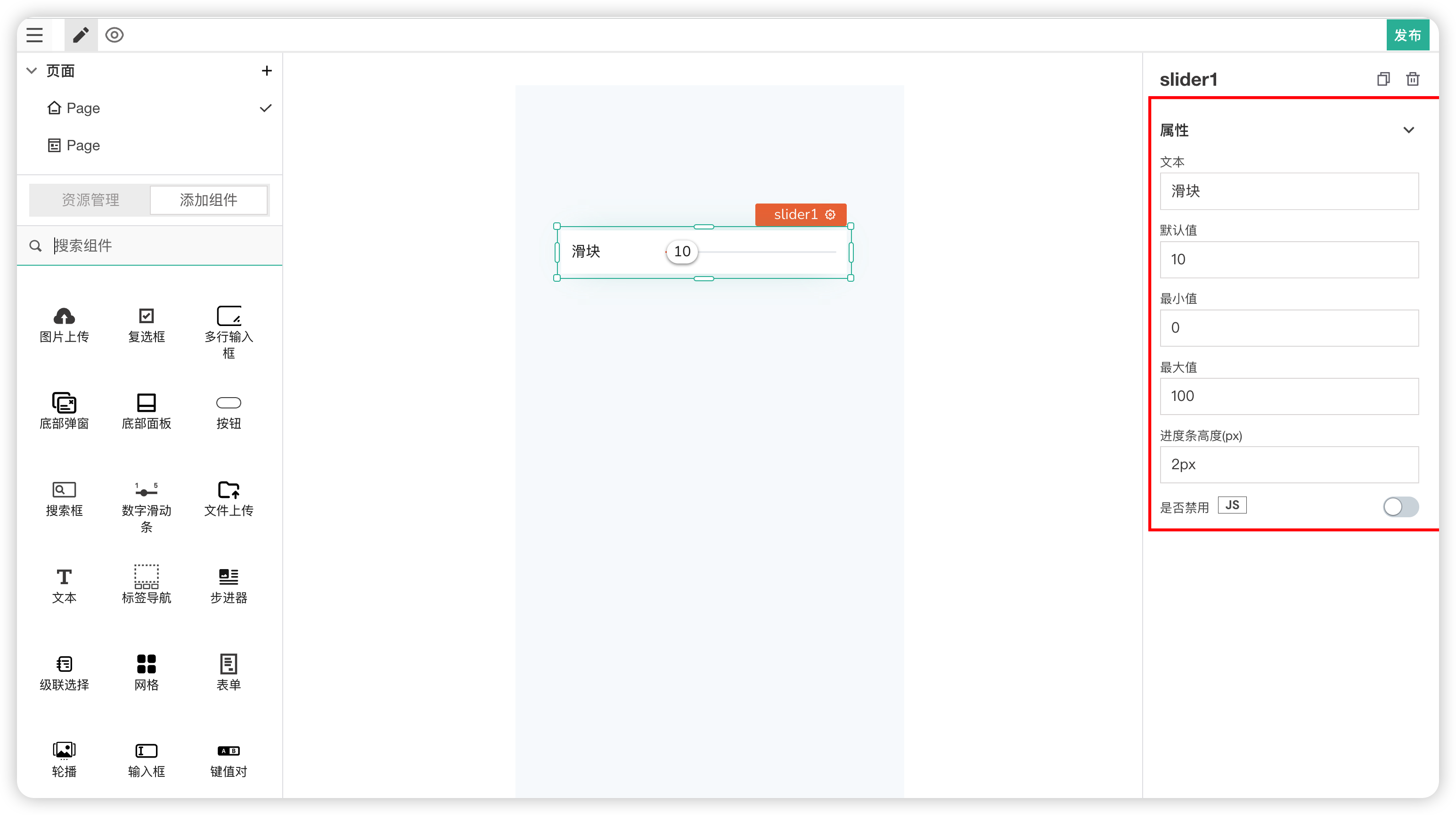 | 进度条高度 | 设置进度条的高度,单位为PX |