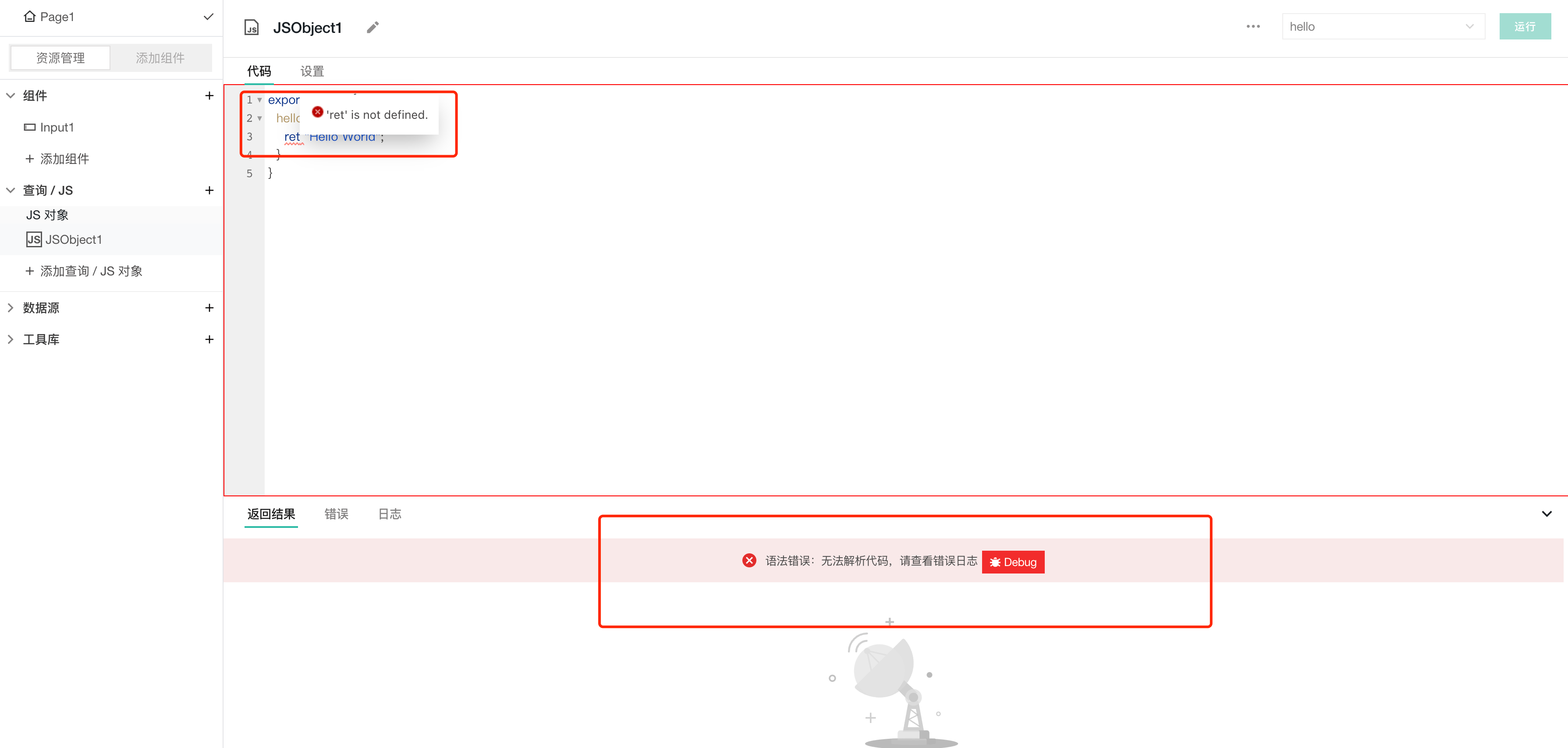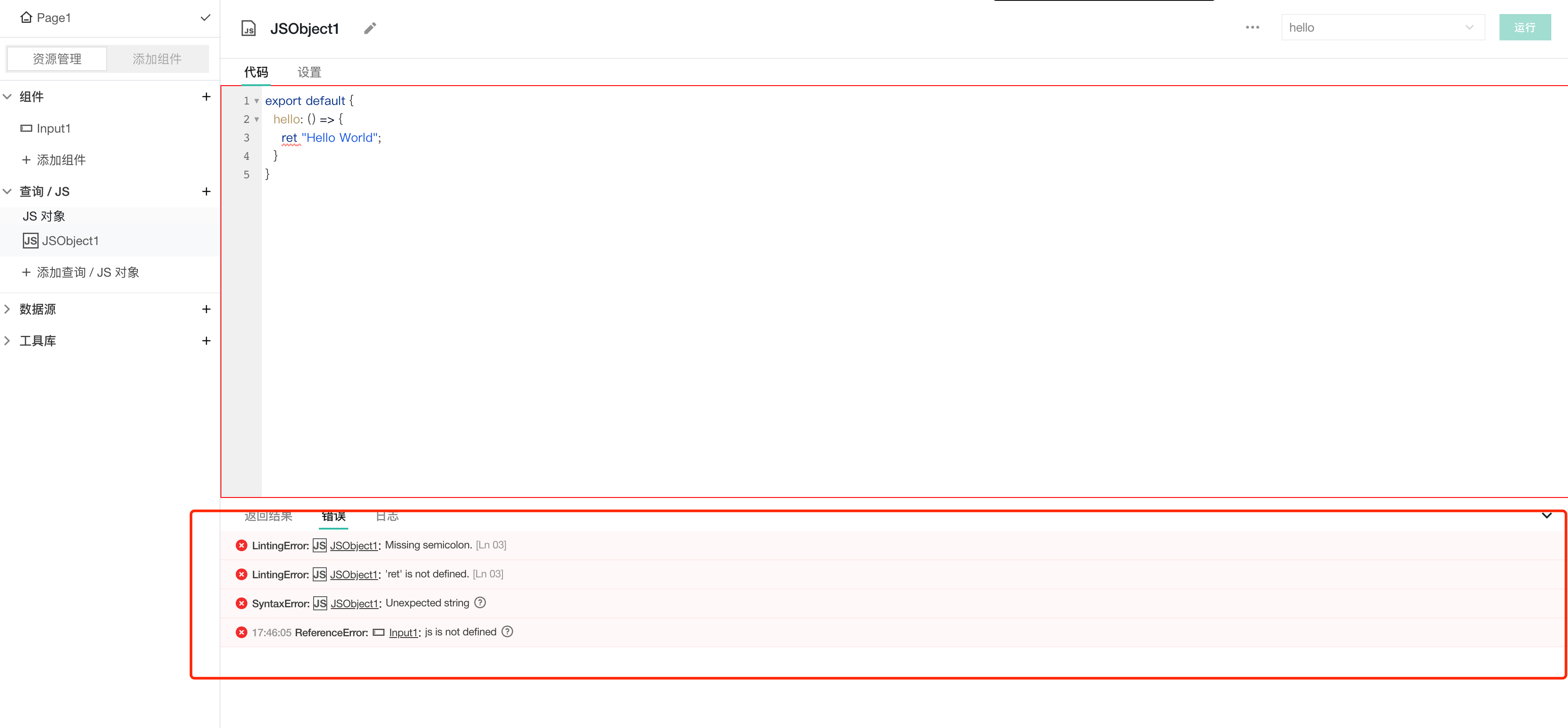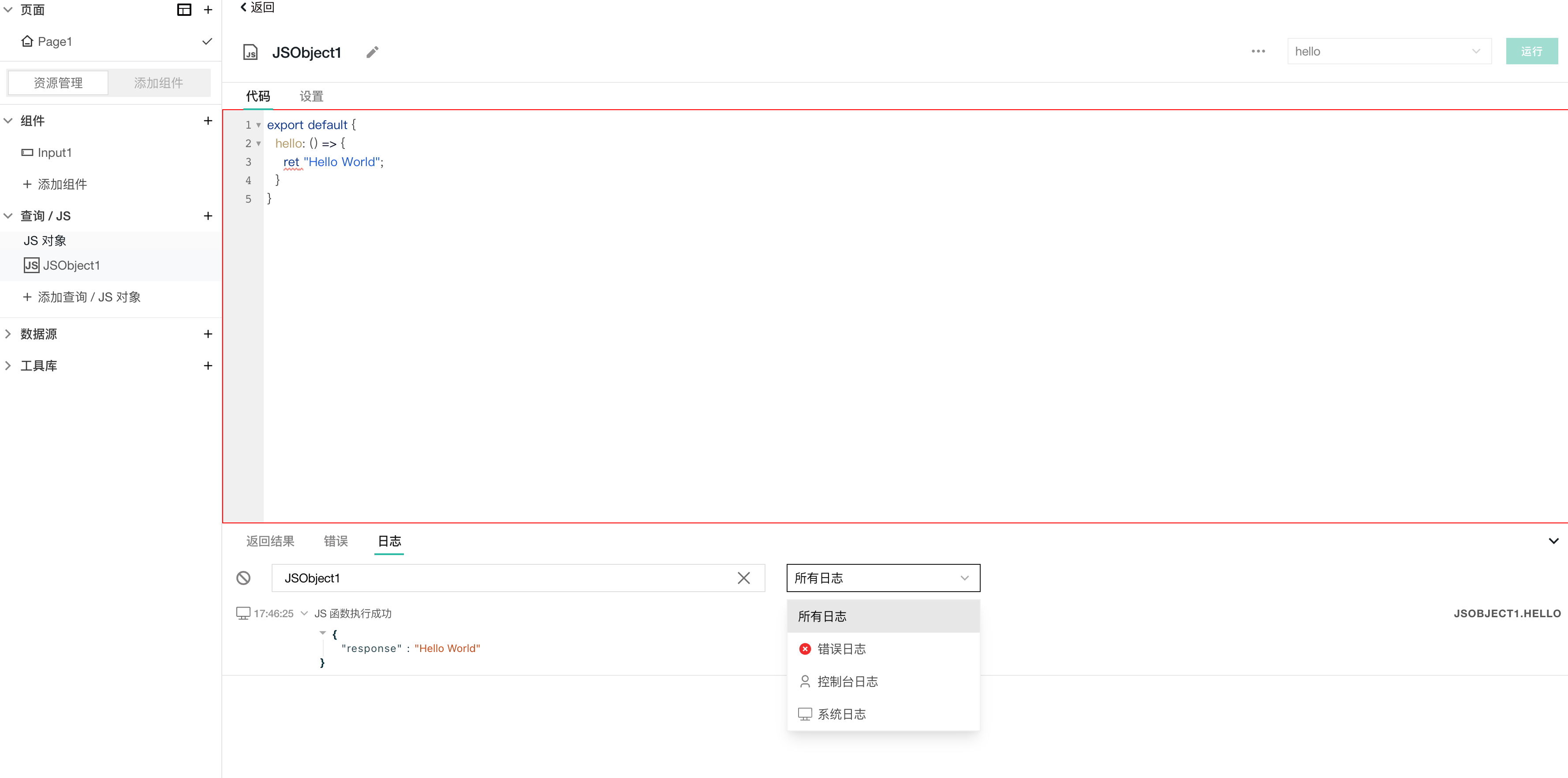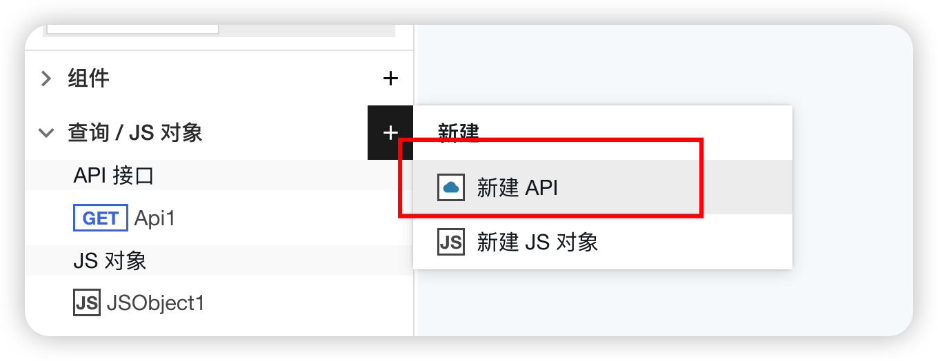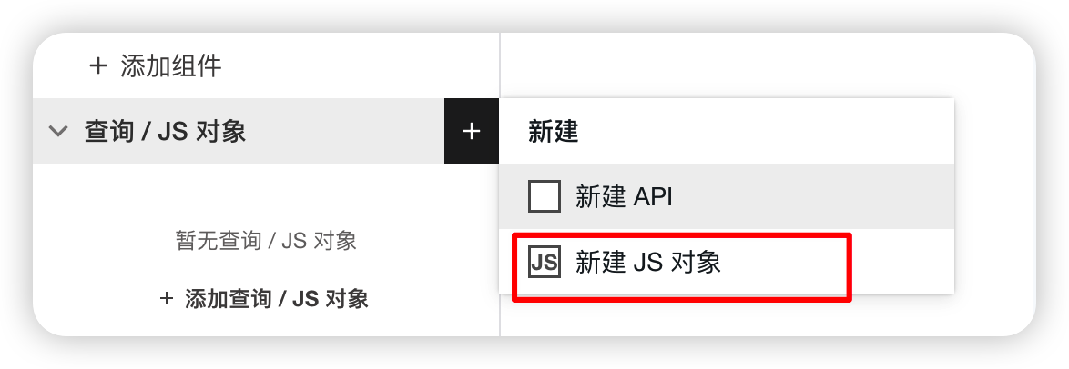 您可以从左侧菜单栏的【查询/JS】中新增JS对象