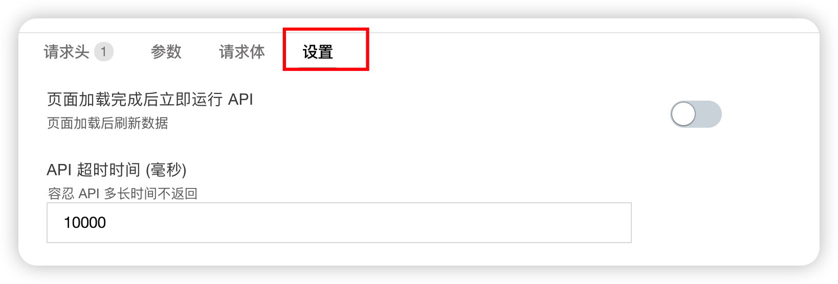 可以设置执行时机,是否页面加载完立即发送请求,以及 API 的超时时间