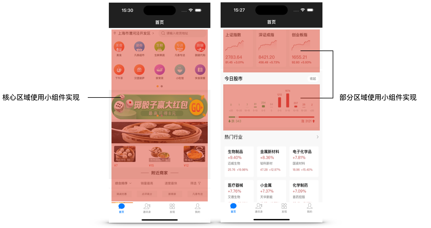 小组件是一种卡片式设计的小程序应用,可以在宿主应用的原生页面中直接嵌入部分小程序的内容,直接在宿主应用的页面中对小程序视图进行渲染。