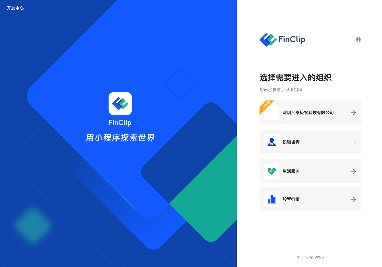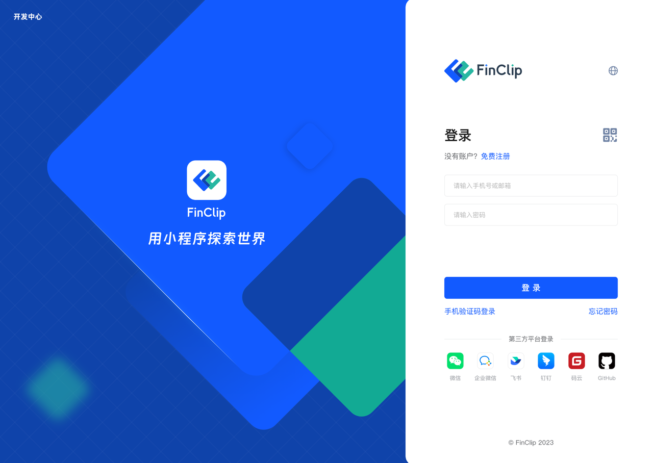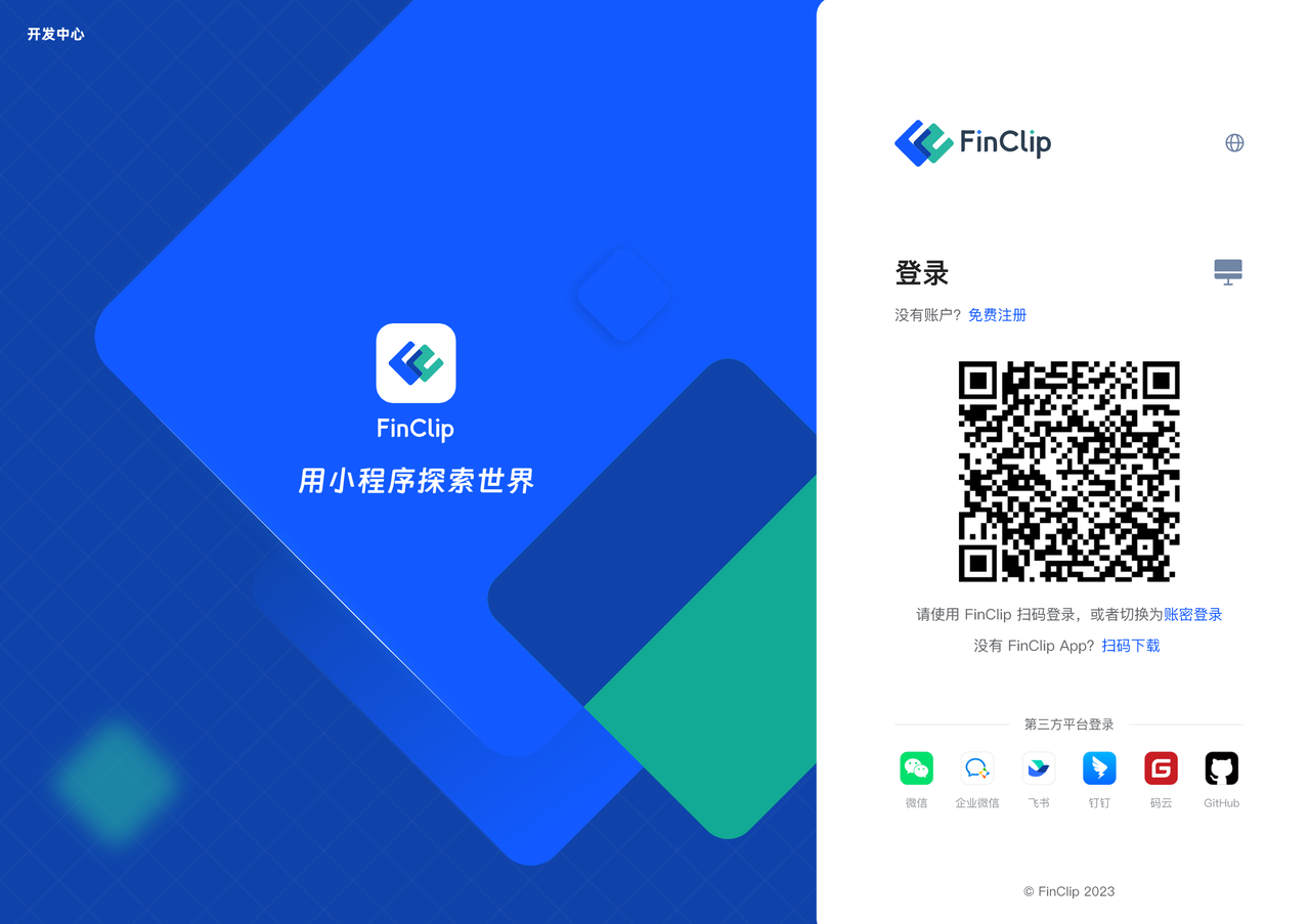 如下图为扫码登录方式,用户需要下载 FinClip 相关 App 完成扫码登录工作。