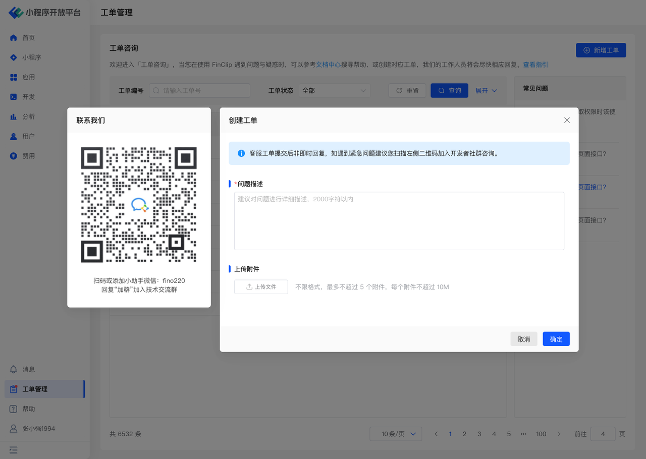 您需要进入「工单咨询」页面,并点击屏幕中的「创建工单」按钮,根据对应场景补充描述信息,或上传对应截图、附件等进行辅助说明您的具体问题;