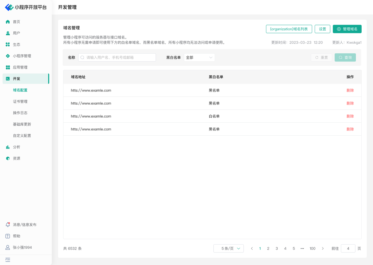- 配置全局的黑白域名名单,对所有小程序生效