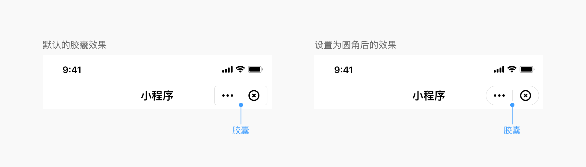 小程序胶囊UI样式修改,需由App实现,一经设置、App内的全部小程序、小游戏、H5应用均将按照本效果实现。