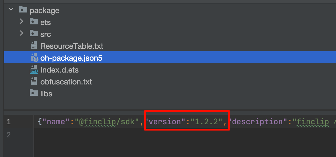 如果是手动集成 har,则打开 har 内的 FinClipSDK.har 文件,找到 oh-package.json5 文件。
